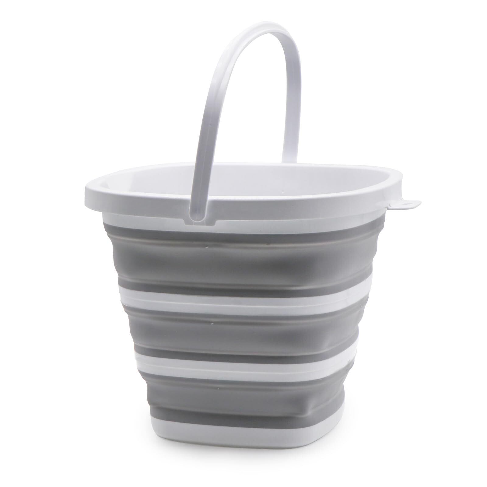 TOSSOW 折りたたみバケツ 補強 シリコン 釣り用バケツ コンパクト収納 耐熱 釣り 洗車 キッチン グレー 10L(四角形)