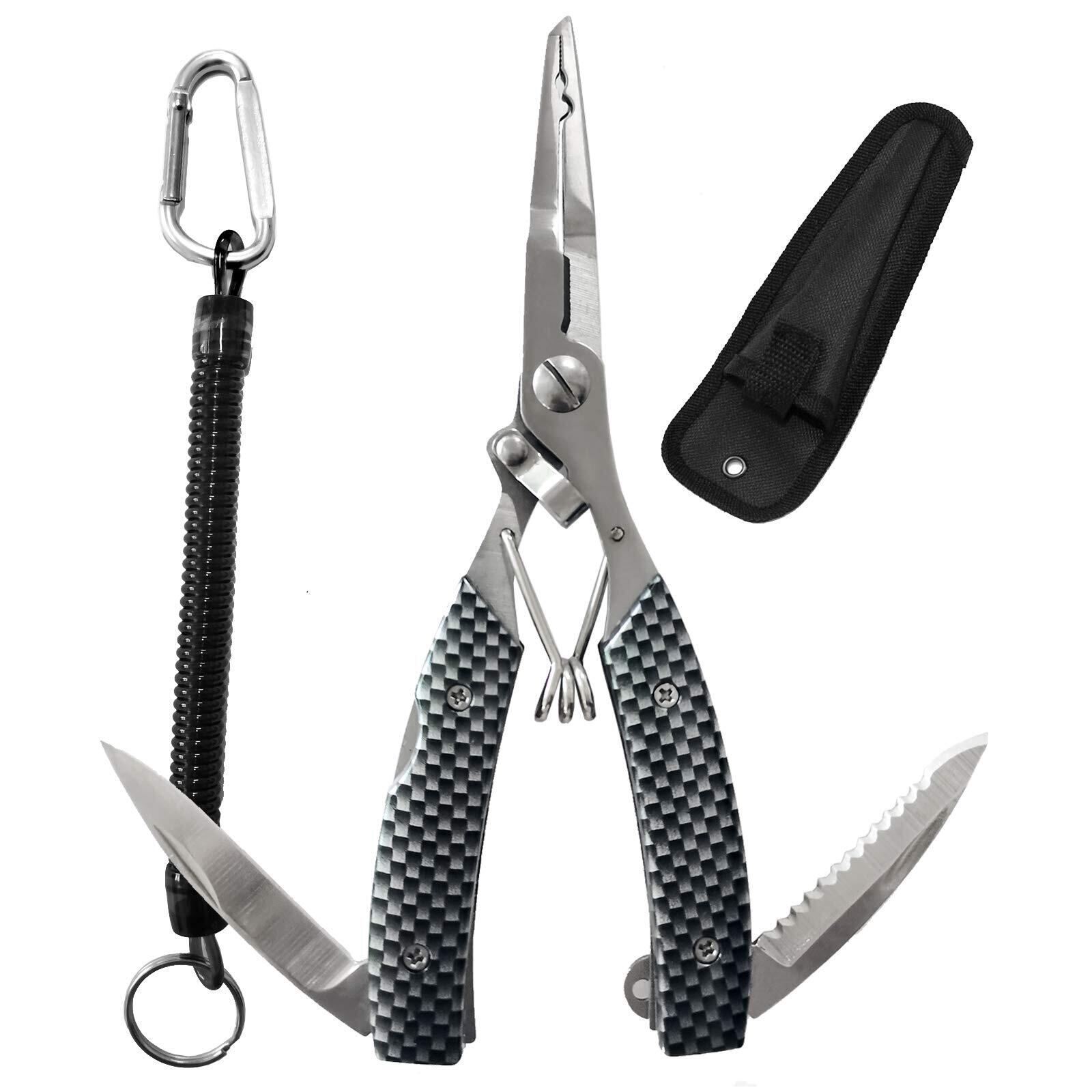 DanYun フィッシングプライヤー 釣り用ペンチ 釣りプライヤー 超軽量 多機能 針はずし フックはずし ラインカッター ステンレス鋼2CR13 錆びない 携帯便利 4点セット 安全ロープ+カラビナ+収納ケース付き