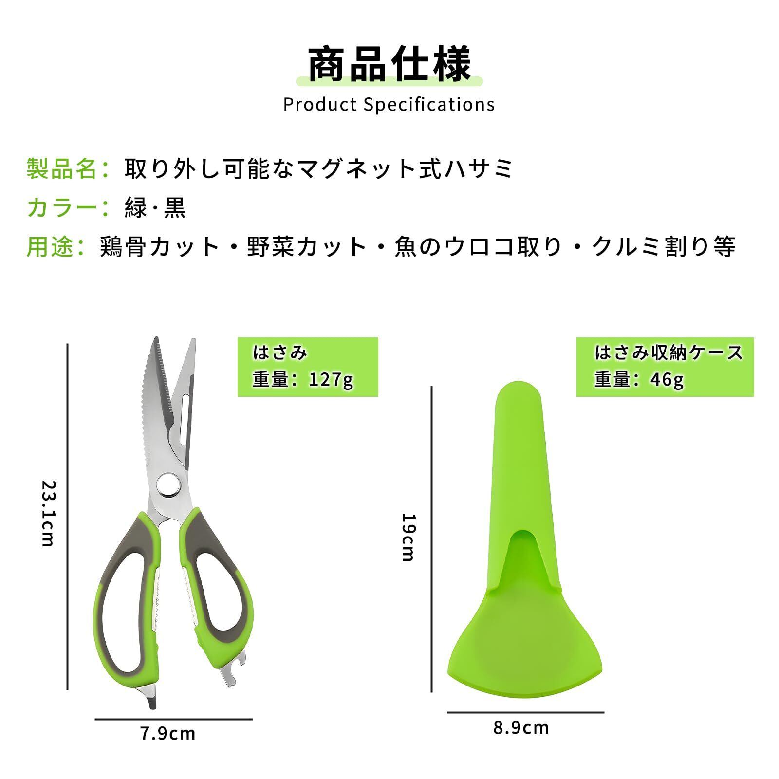 フリランス-ショプ キッチンバサミ 多機能 マグネット収納ボックス付き 取り外し可能 料理ハサミ 釣りハサミ 冷蔵庫に吸着可能 鋏 握り心地の良い 耐久性 防サビ 魚 鯛 キッチン鋏(黒)