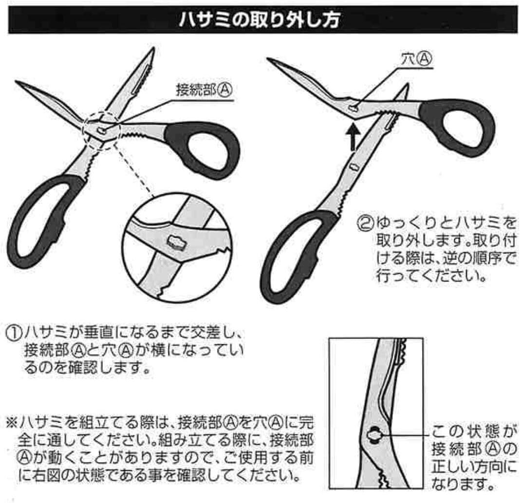 用途: かにやエビなどの硬い殻を簡単にカットするための専用ハサミです。 特徴: カラ切り用刃: 硬い殻をスムーズにカットできる鋭い刃。 毛取り用ギザ刃: しっかりとしたギザ刃で、殻を割る際に便利です。 カラ割り用ギザ刃: 殻を割るのに適した設計で、手軽に使用できます。 デザイン: 人間工学に基づいたグリップで、長時間の使用でも疲れにくい設計。 材質: 耐久性のあるステンレス製で、錆びにくく清潔に保てます。 使用方法 ハサミを開いて、対象の殻をしっかりと挟みます。 ハサミを閉じて、力を入れてカットします。 必要に応じて、毛取りやカラ割り用刃を使用して処理します。 注意事項 使用後は必ず洗浄し、乾燥させてから保管してください。 小さなお子様の手の届かない場所に保管してください。 固い殻をらくらくカット! かに用ハサミ カラ切り用刃 毛取り用ギザ刃 カラ割り用ギザ刃 刃を取り外せて洗いやすい! 商品サイズ:全長:約200mm 材質:金属部・刃部:ステンレス鋼 樹脂部:ポリプロピレン