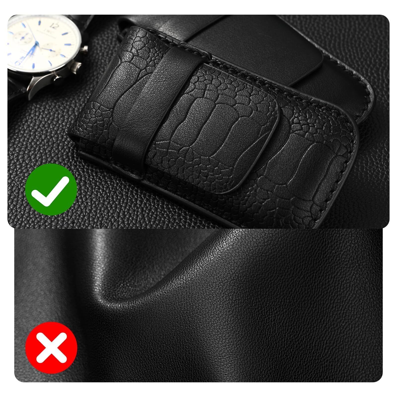 プレミアム素材の通気性:本革のような通気性を実現する特殊加工を施しています。長期間保管しても湿気がこもりません。注:大型の時計には適していません