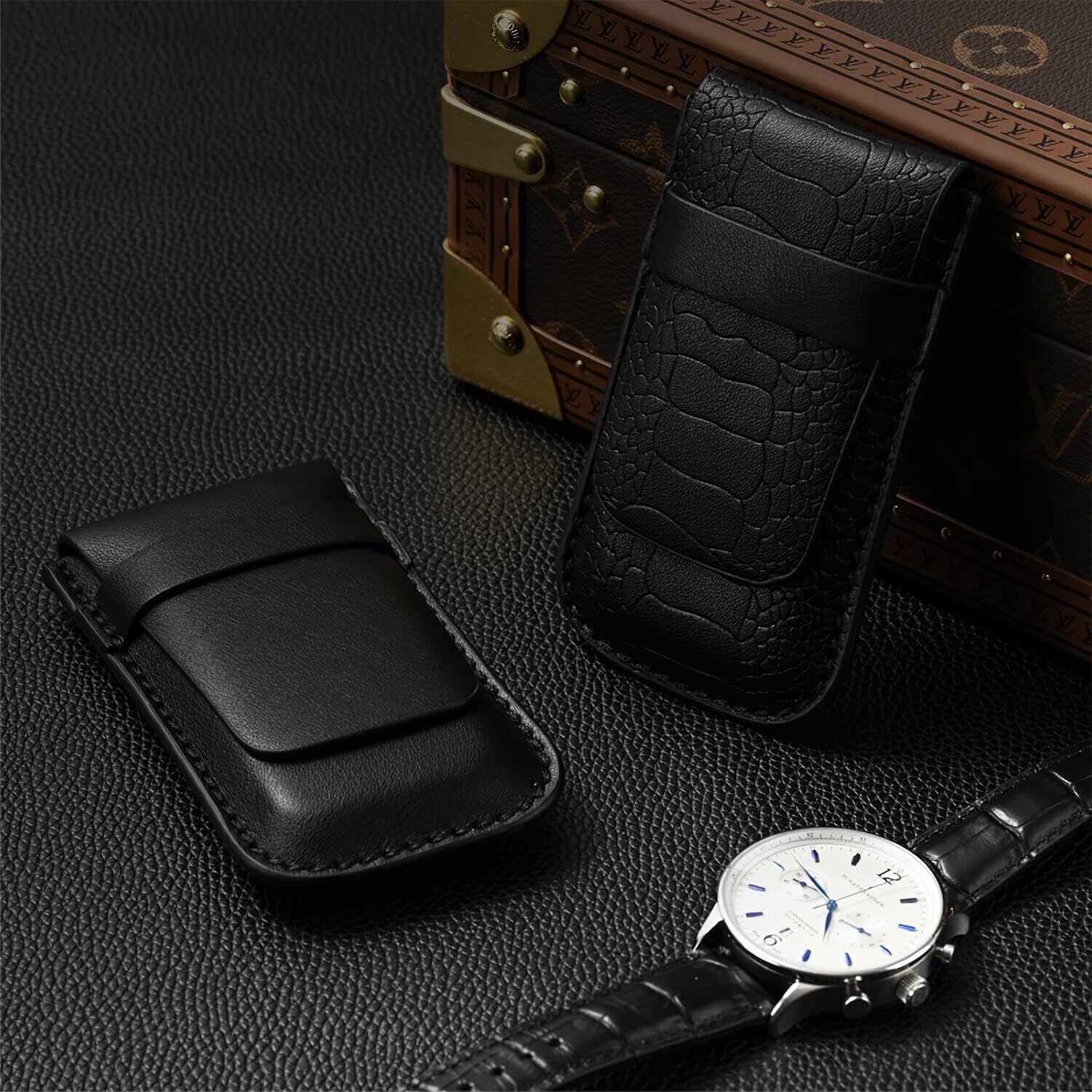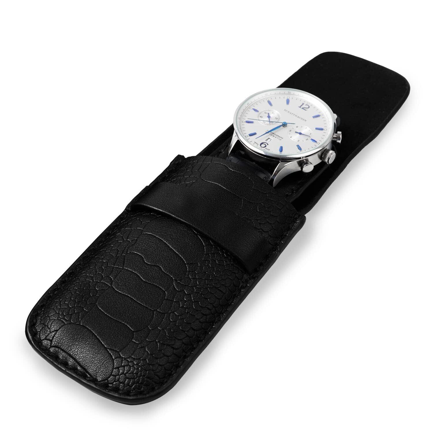 Woodten クロコダイルエンボス 時計ケース 1本用 レザー 携帯用 職人手工製 ビジネス 旅行 通勤に最適D05604