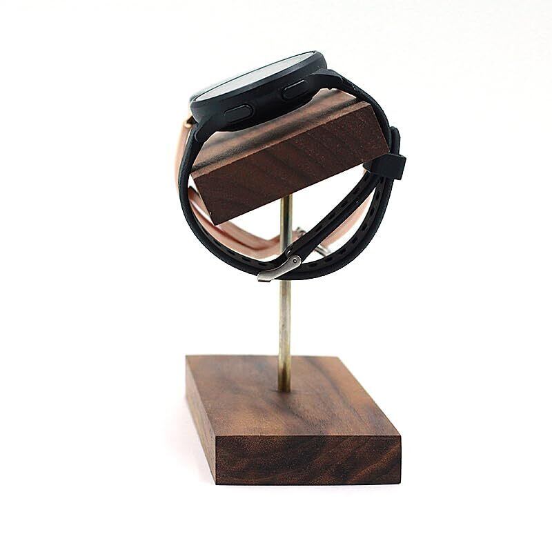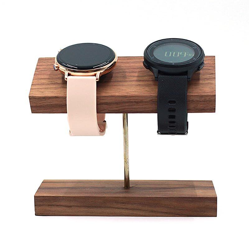 堅牢且持久:金属のフレームが安定地サポート、黒胡桃は温かさと質感を与え、共に長期耐用の手時計用台座を創造する。