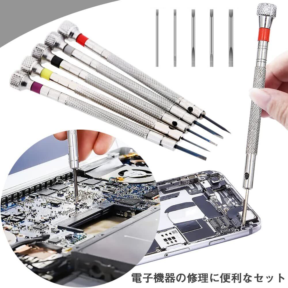 YANJING 腕時計 用 精密 マイナス ドライバー 工具セット 0.8mm-1.6mm 電池交換/バンドの調整/パソコンの修理/眼鏡の修理/腕時計の修理 細かい 作業 滑り止め付 交換可能 修理 工具 5本セット