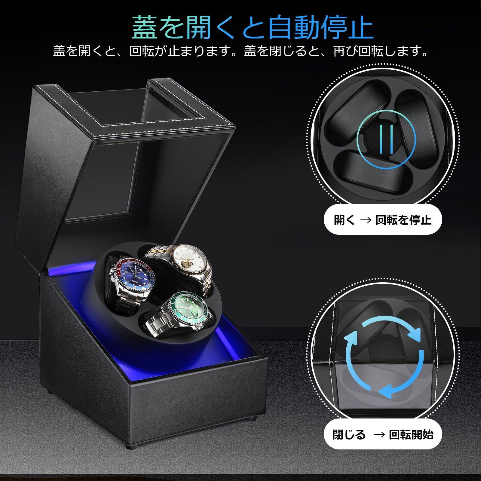 ワインディングマシーン (2本巻き) (3本巻き) (4本巻き+6本収納) (6本巻き+6本収納)ウォッチワインダー 自動巻き時計ワインディングマシーン 日本製 マブチモーター 静音設計 新型の腕時計自動巻き上げ機、男女の腕時計は全部使えます (C02:ブラック3+0P)