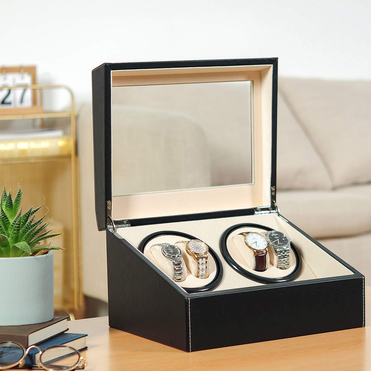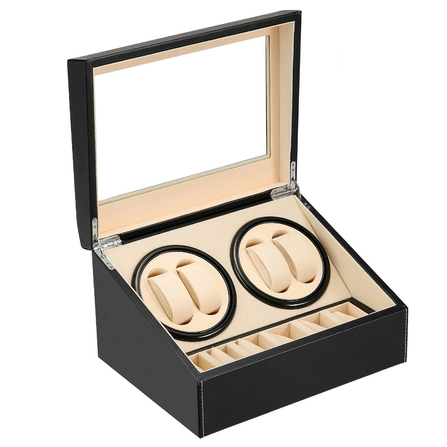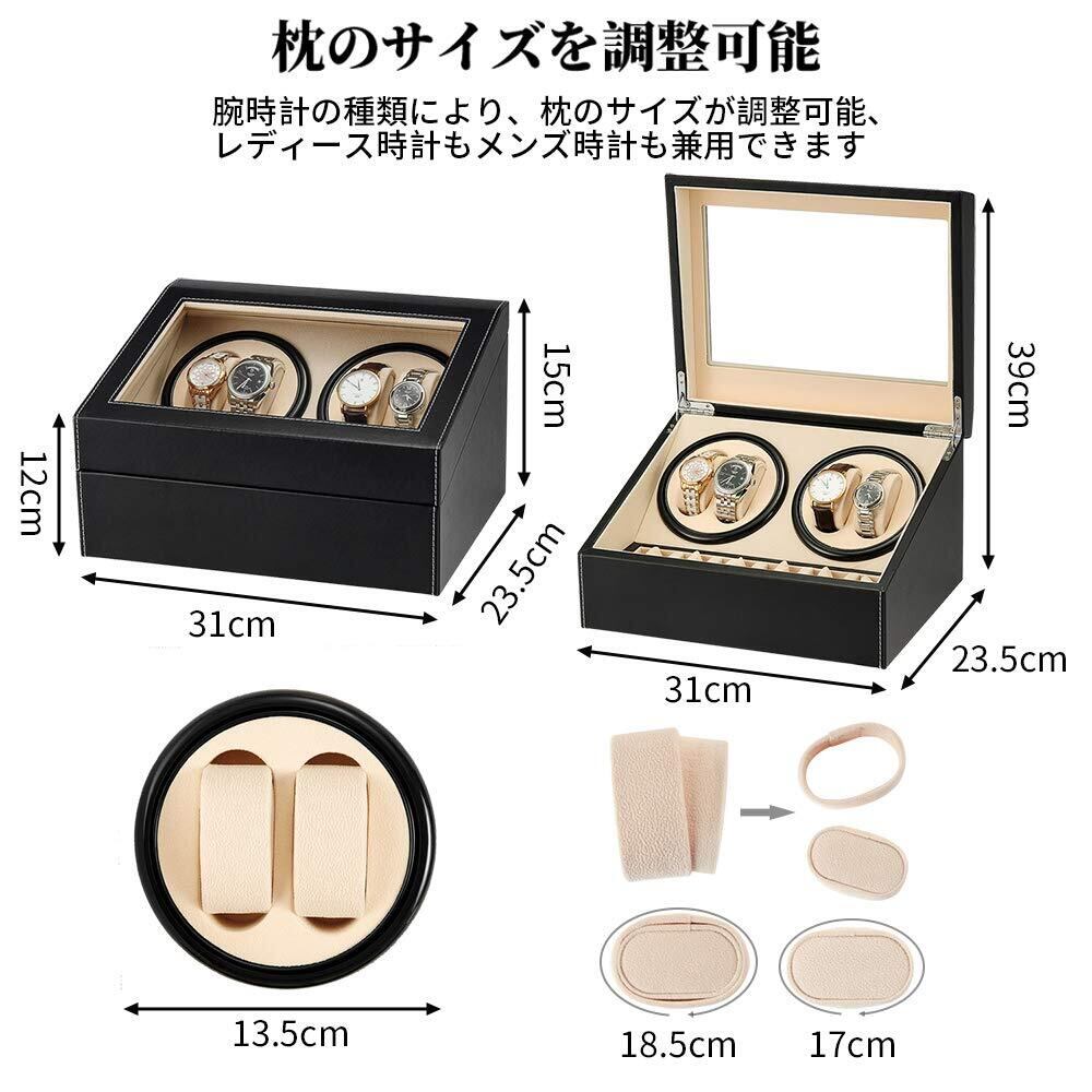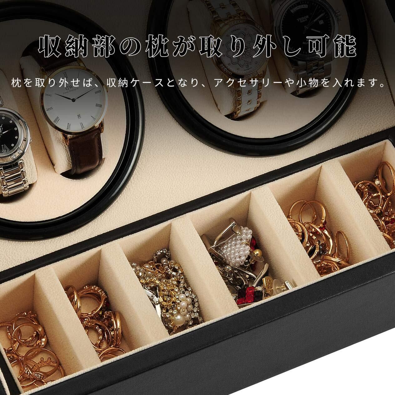 ワインディングマシーン ウォッチワインダー ワインダー 腕時計 自動巻き時計ワインディングマシーン 日本製 マブチモーター 腕時計自動巻き上げ機 腕時計収納ケース ジュエリー収納 時計バンド収納 (ブラック レザー-103B)