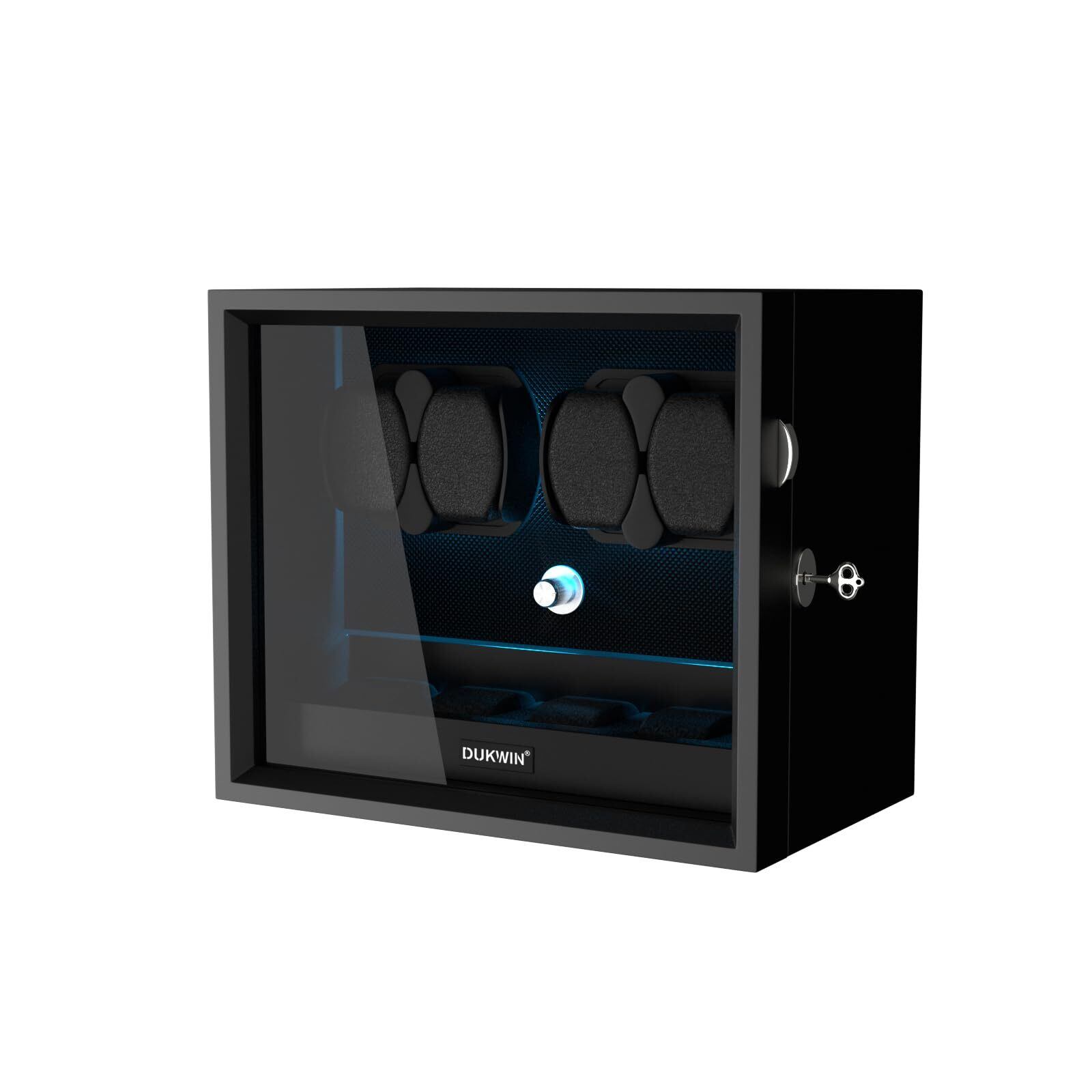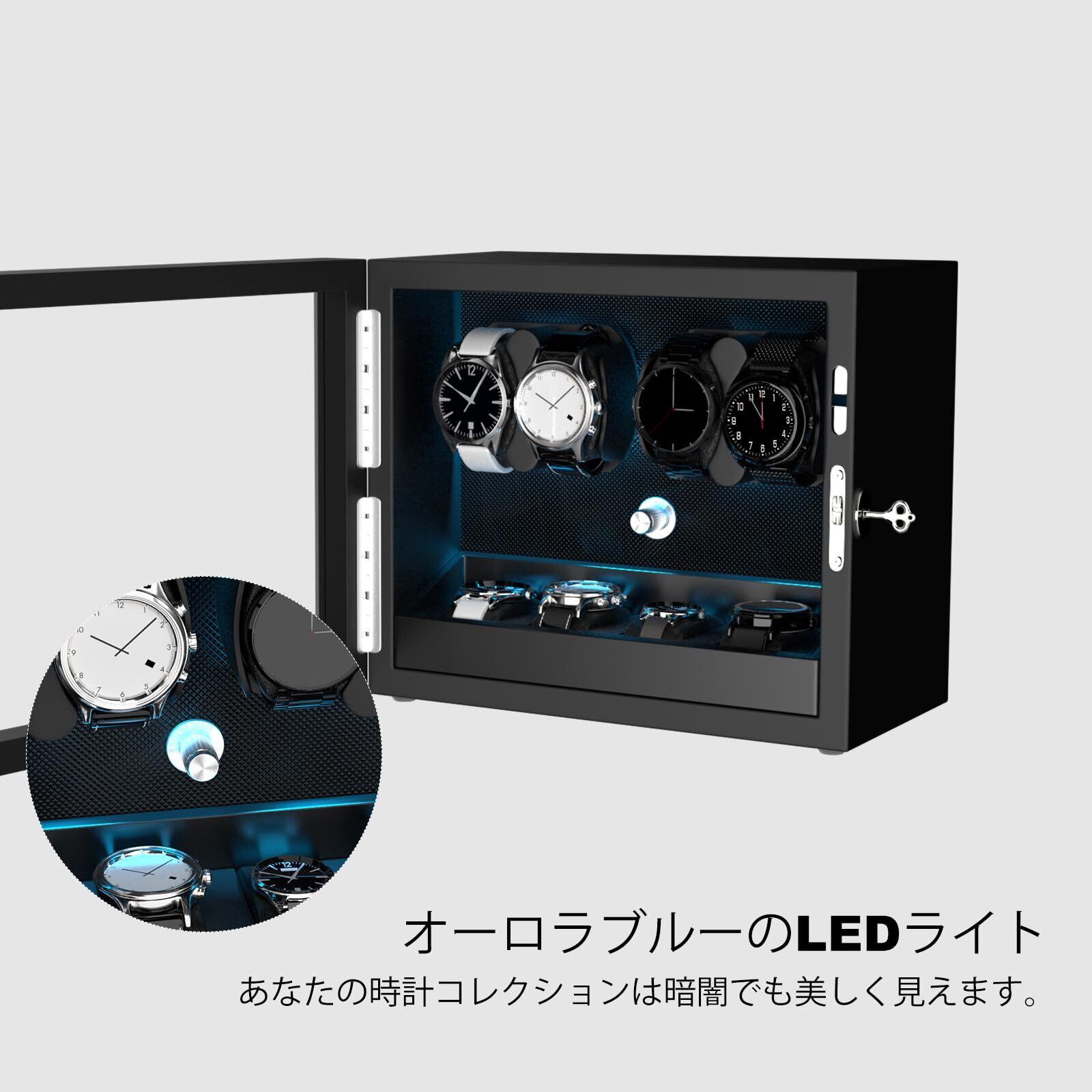 DUKWIN ワインディングマシーン 4本巻き上げ+4本収納 ウォッチワインダー 自動巻き上げ機 4/6/8/12本巻き 腕時計ケース 日本製マブチモーター LEDライト付き 高級収納ケース 男女の時計に使える (ブラック)