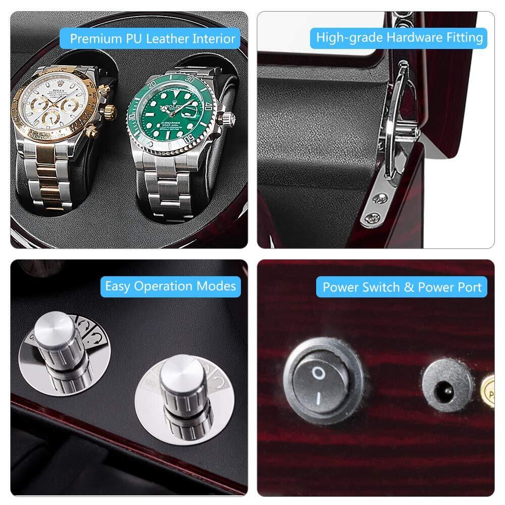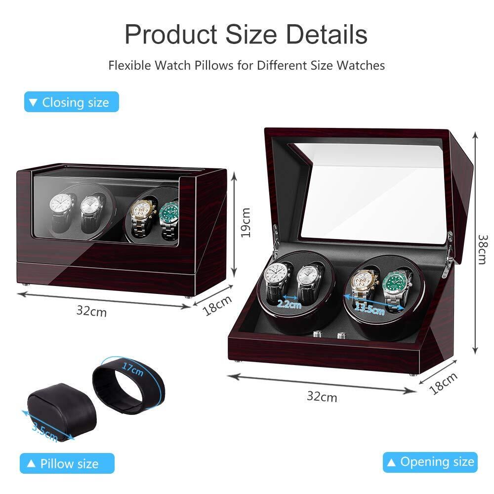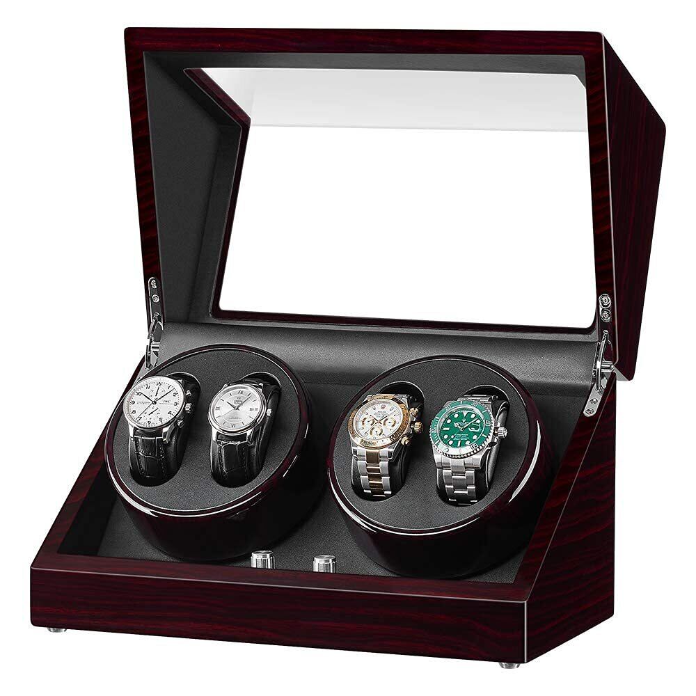 JQUEEN ワインディングマシーン 4本巻 ウォッチワインダー 腕時計ケース 自動巻き上げ機 自動巻時計ケース ワインディング 電池式 日本製マブチモーター 木製 静音