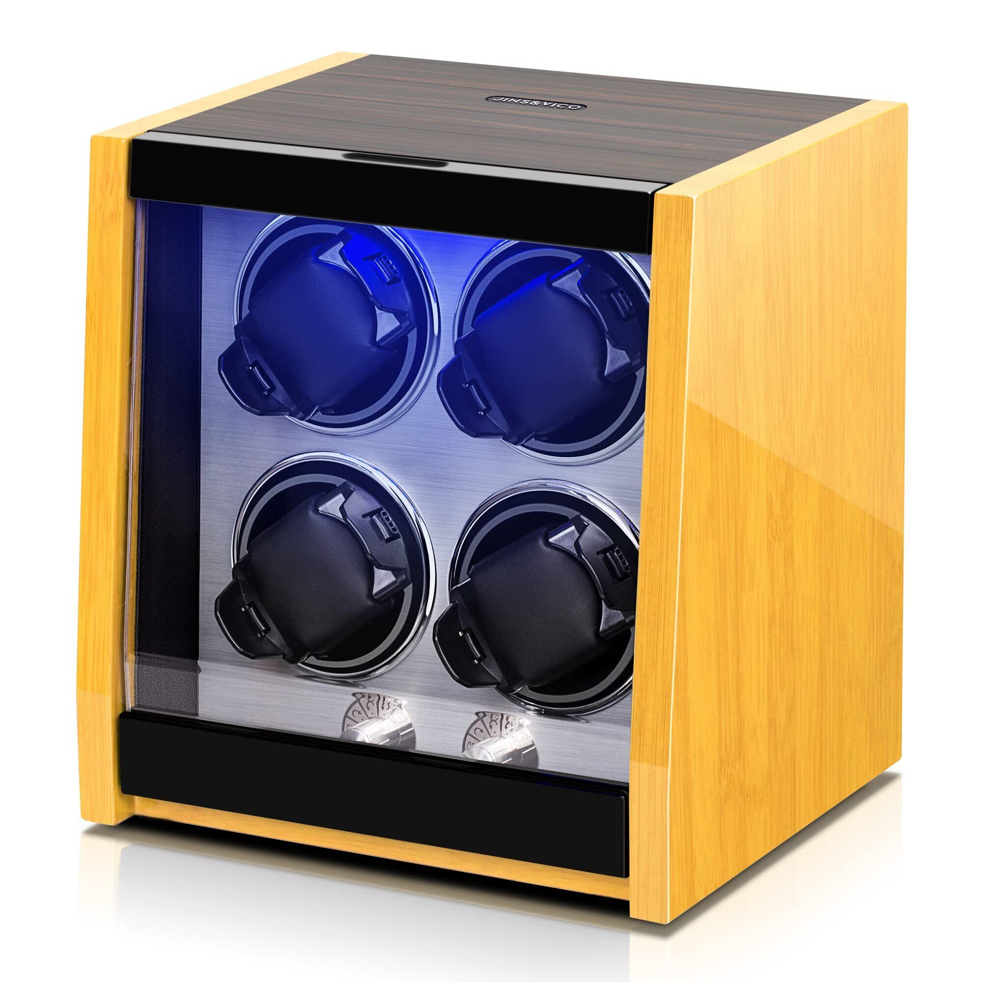 ワインディングマシーン 4本巻き上げ 腕時計自動巻き上げ機 ウォッチワインダー 高級時計ケース 自動巻き 腕時計ワインダー 静音設計 LEDライト付き ウッド調 Sサイズクッション1個とLサイズクッション1個が付属