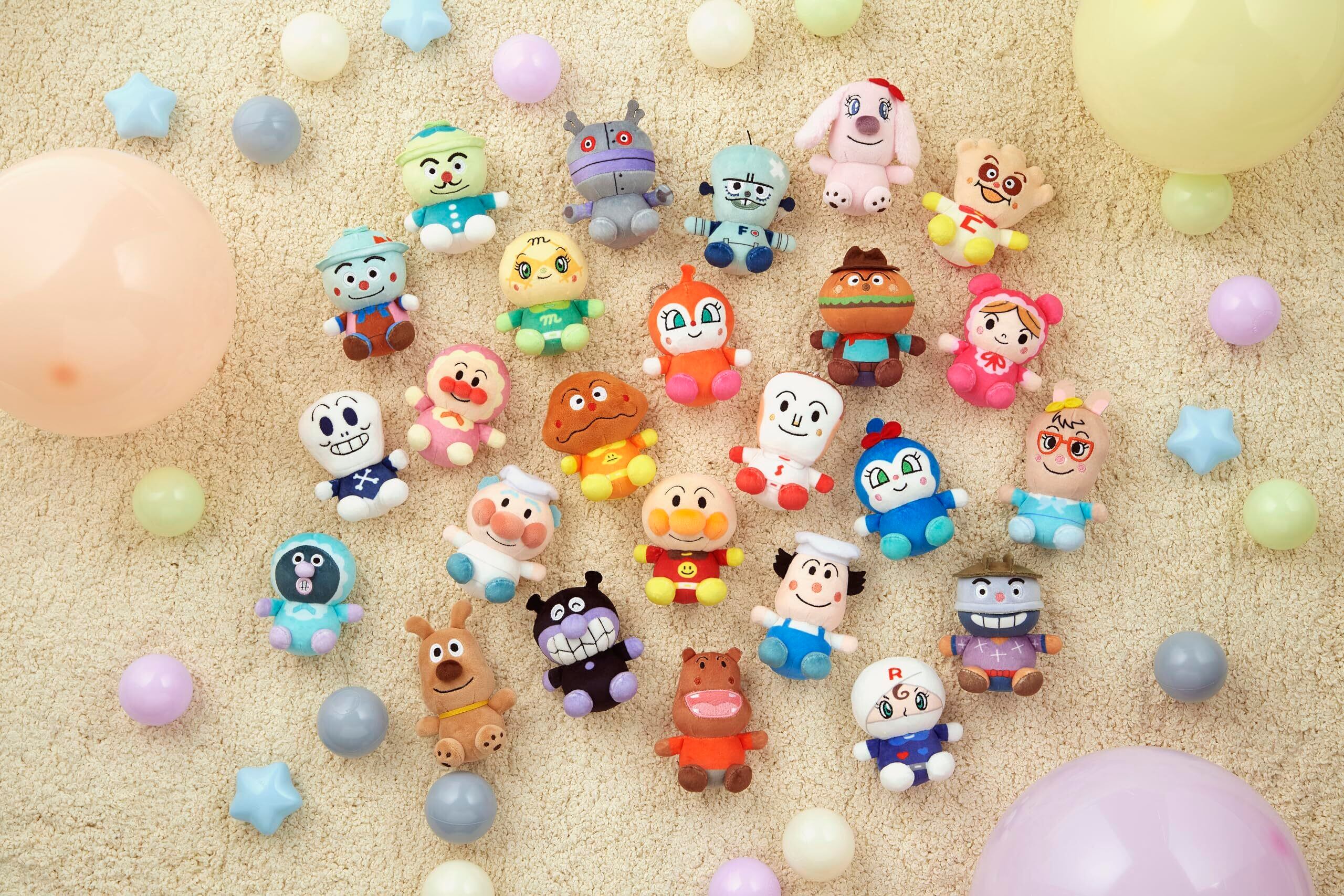 もちもちやわらかくって、きもちい~い。もちもちの生地でできた、アンパンマンたちのてのひらサイズのマスコットが登場!