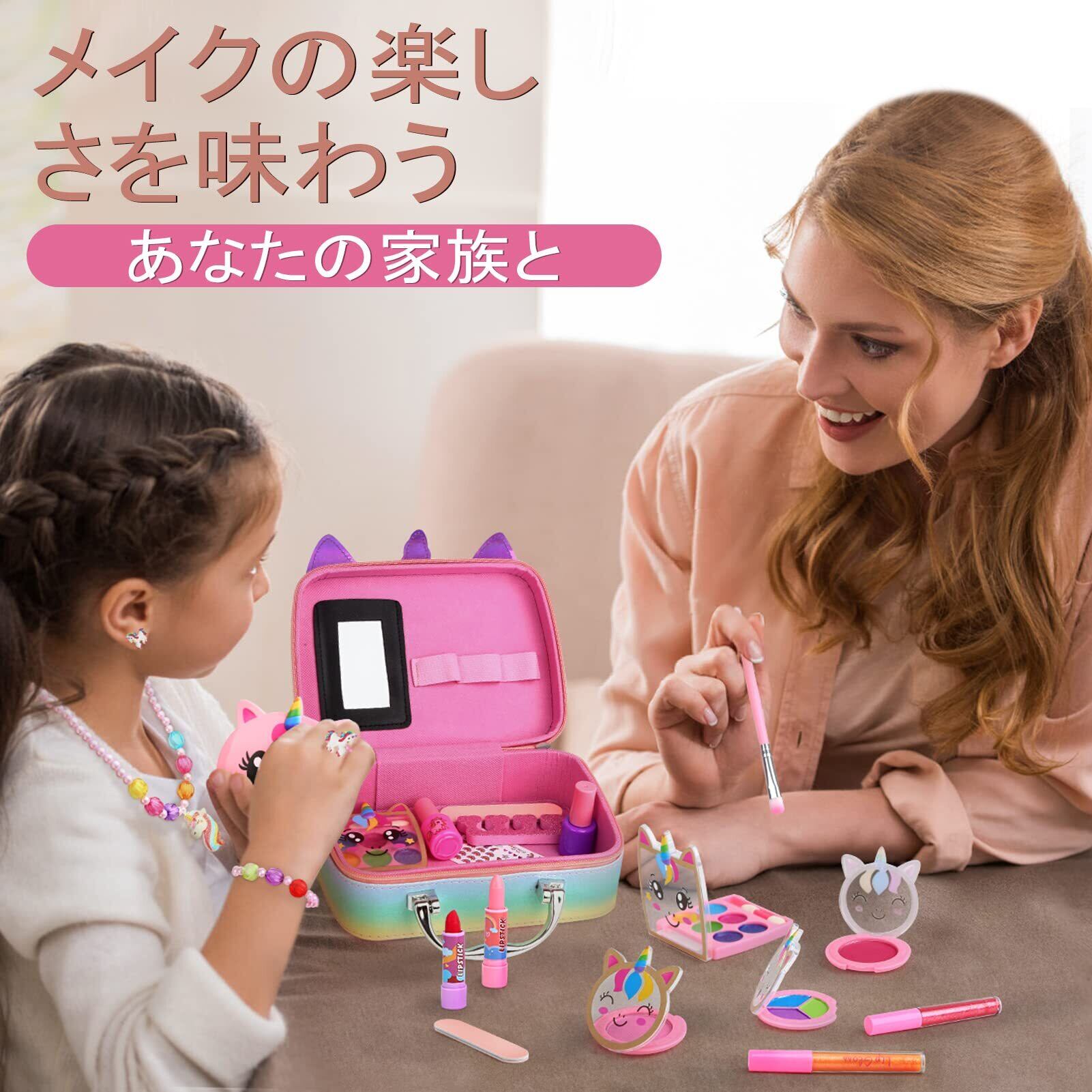 [ウォッシャブル & 安全性コスメセット セット]: このキッズ メイクアップ キットは、ウォッシャブル & 安全性で、お手入れが簡単で刺激がありません。子供たちが遊び終わったら、石鹸と水で洗い流してメイクを落とすことができます。安心のメイクおもちゃセットです。