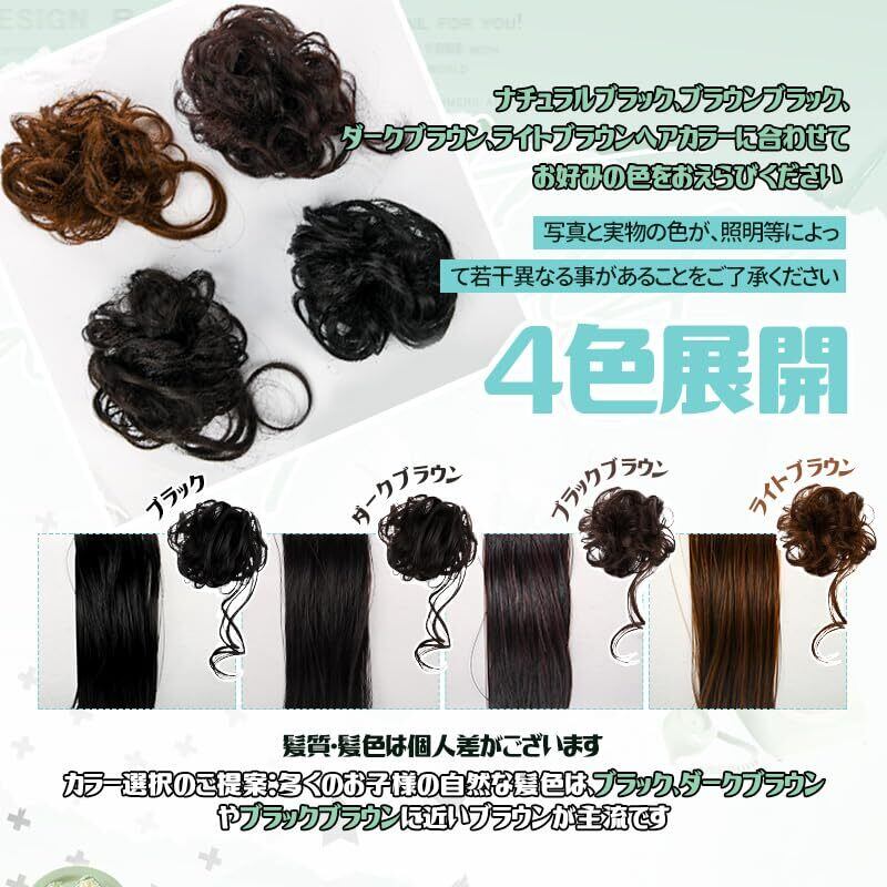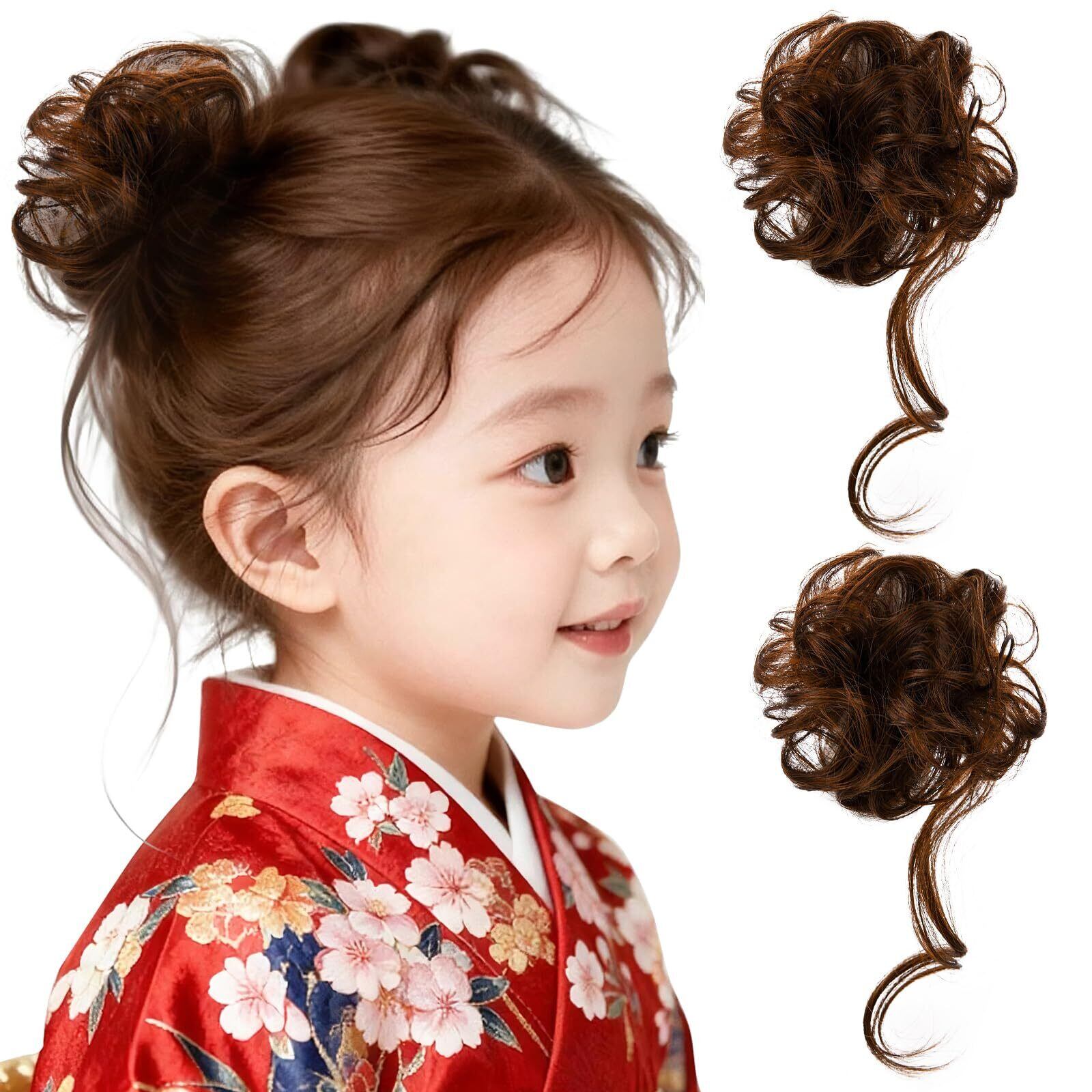 [OTAKUMARKET] お団子 ウィッグ 子供 2個セットカール付き シュシュタイプ 七五三 浴衣 和装 入園 卒園式 対応 まとめ髪用 増毛ヘアアクセサリー 4色 (ライトブラウン)
