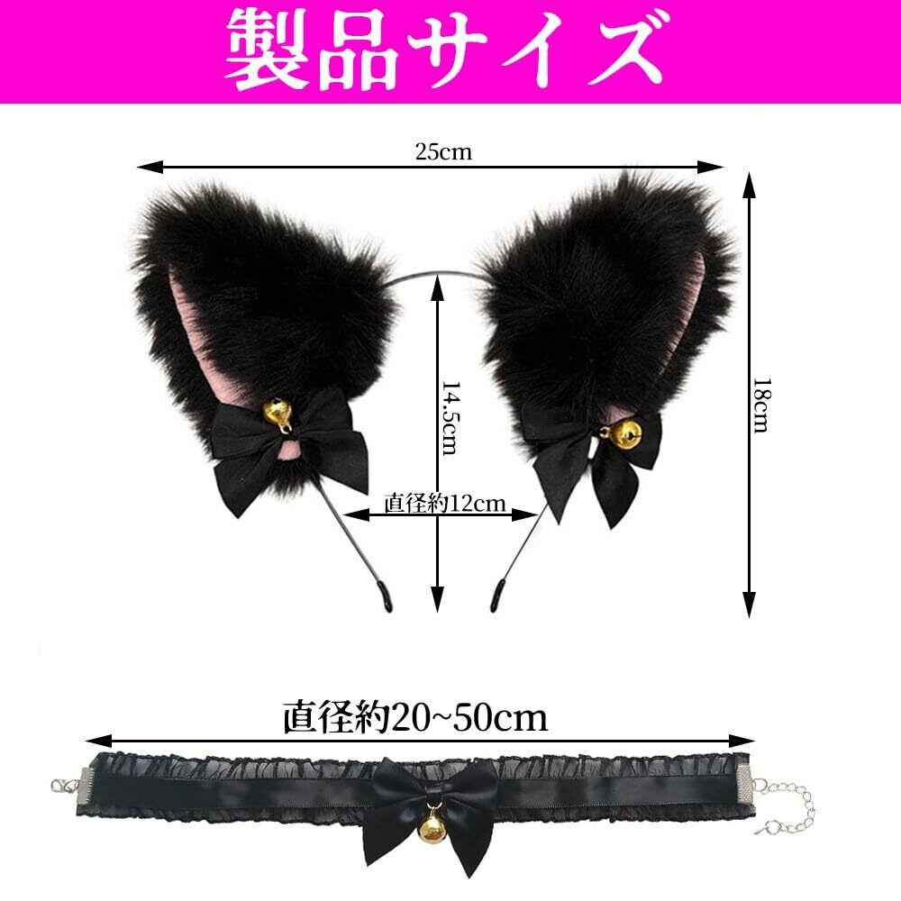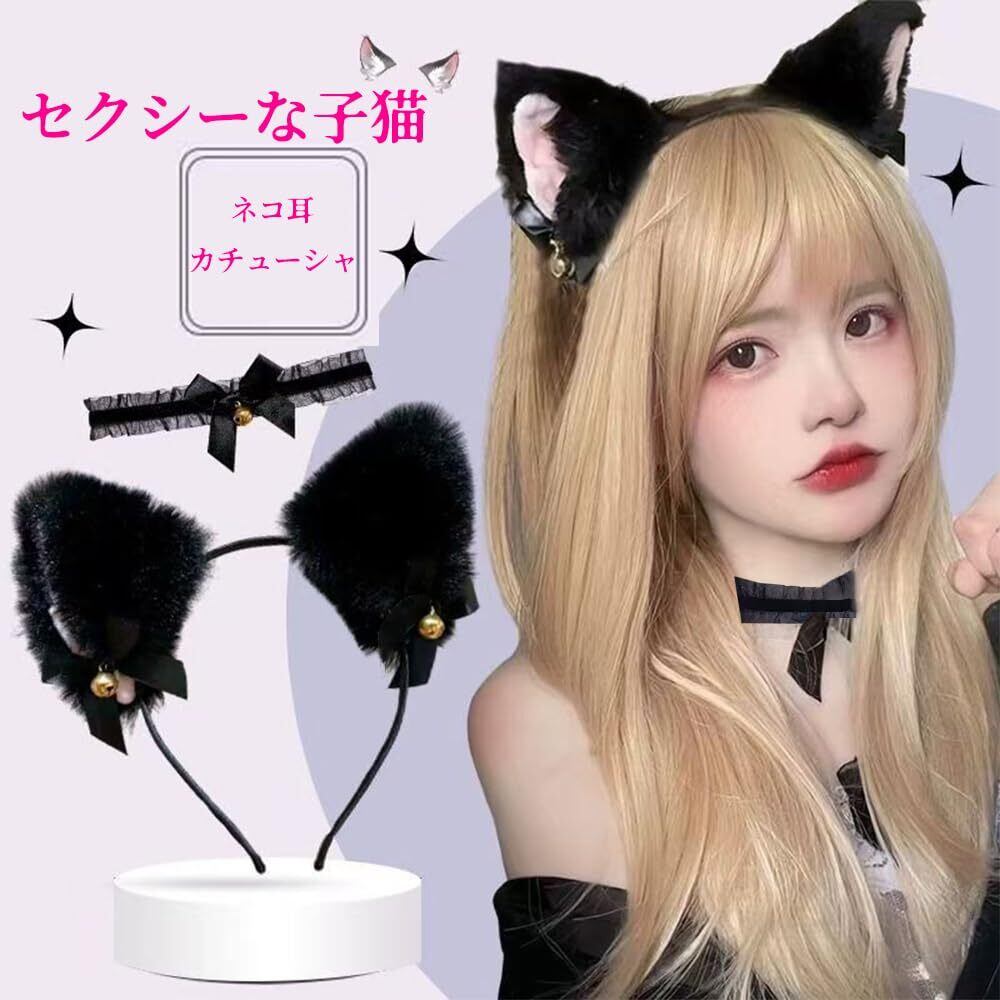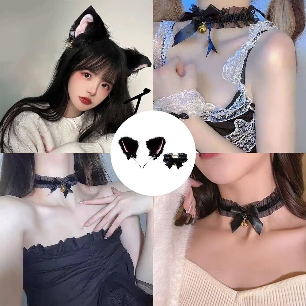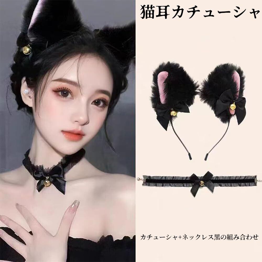WFGPXC 猫耳 カチューシャ 2点セット 首輪 鈴付き かわいい髪飾り ハロウィン 愛い 学園祭 仮装 小物 大人用 [並行輸入品]