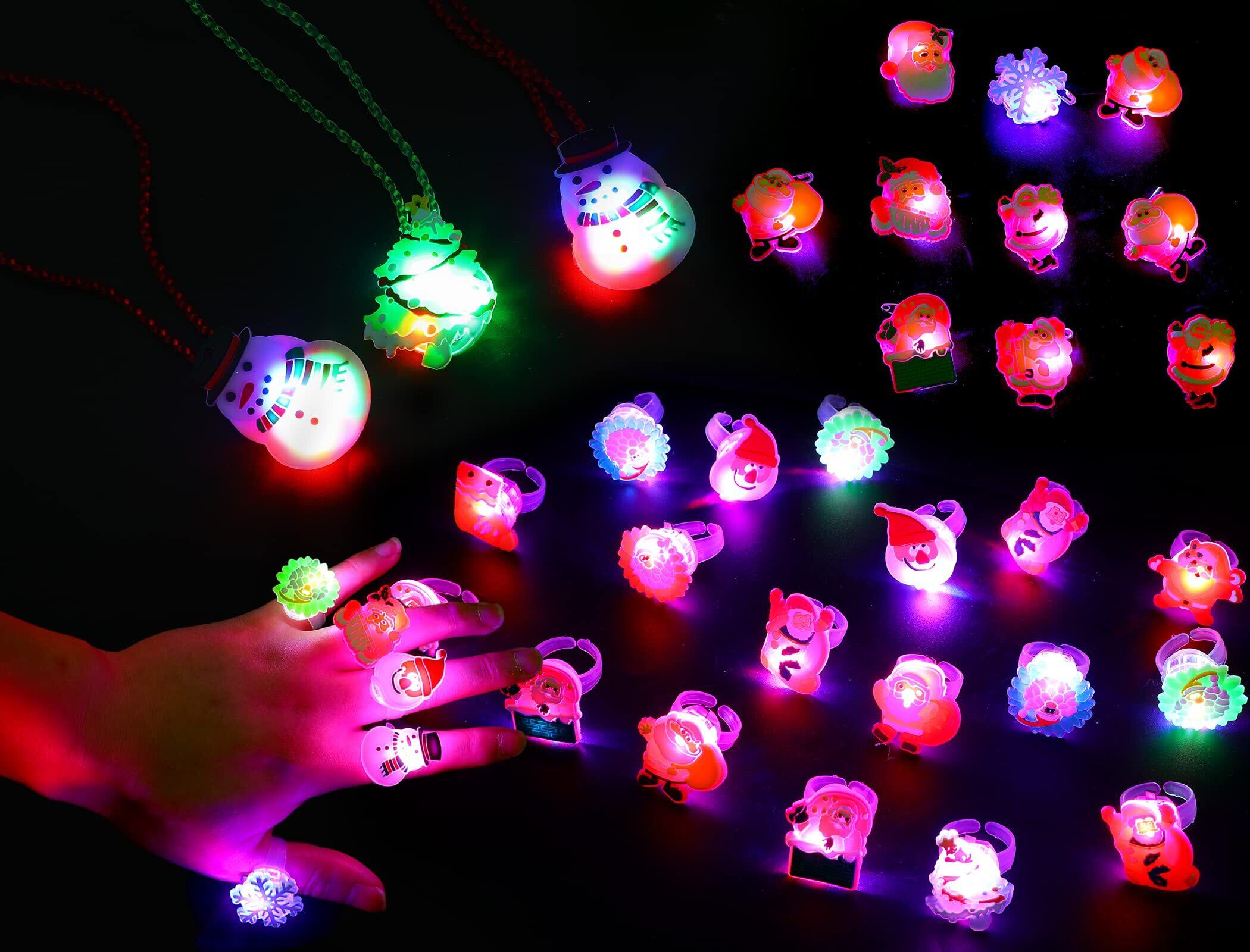 DERAYEE クリスマス 発光指輪 飾り 50個入り ランダムで発送 ピカピカ 光るネックレス ブレスレット ブローチ