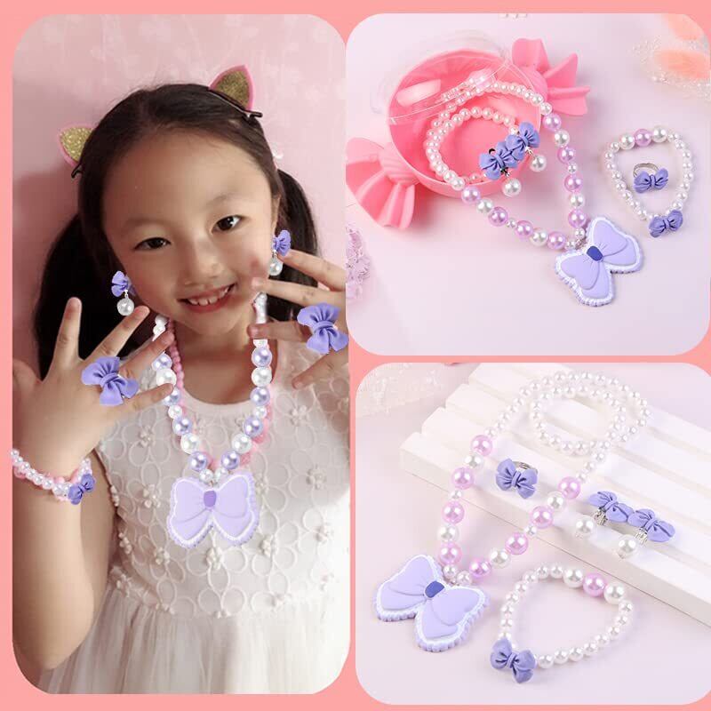 [AAGWW] 子供アクセサリー キャラクター新モデル 真珠ブレスレット ペンダントネックレス 耳留めセット キット おもちゃ 女の子 子供 クリスマスプレゼント ブレスレット 腕輪 ペンダントセット