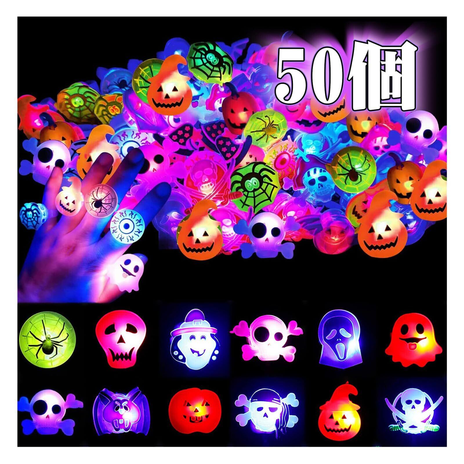[RunElves] 光る指輪 ハロウィン 光るおもちゃ 縁日 50個入り 発光 12種類 お祭り 景品 縁日グッズ 光るリング キラキラリング ピカピカ 子供 大人 セット 光り物玩具 飾り 飾り付け 装飾 プレゼント