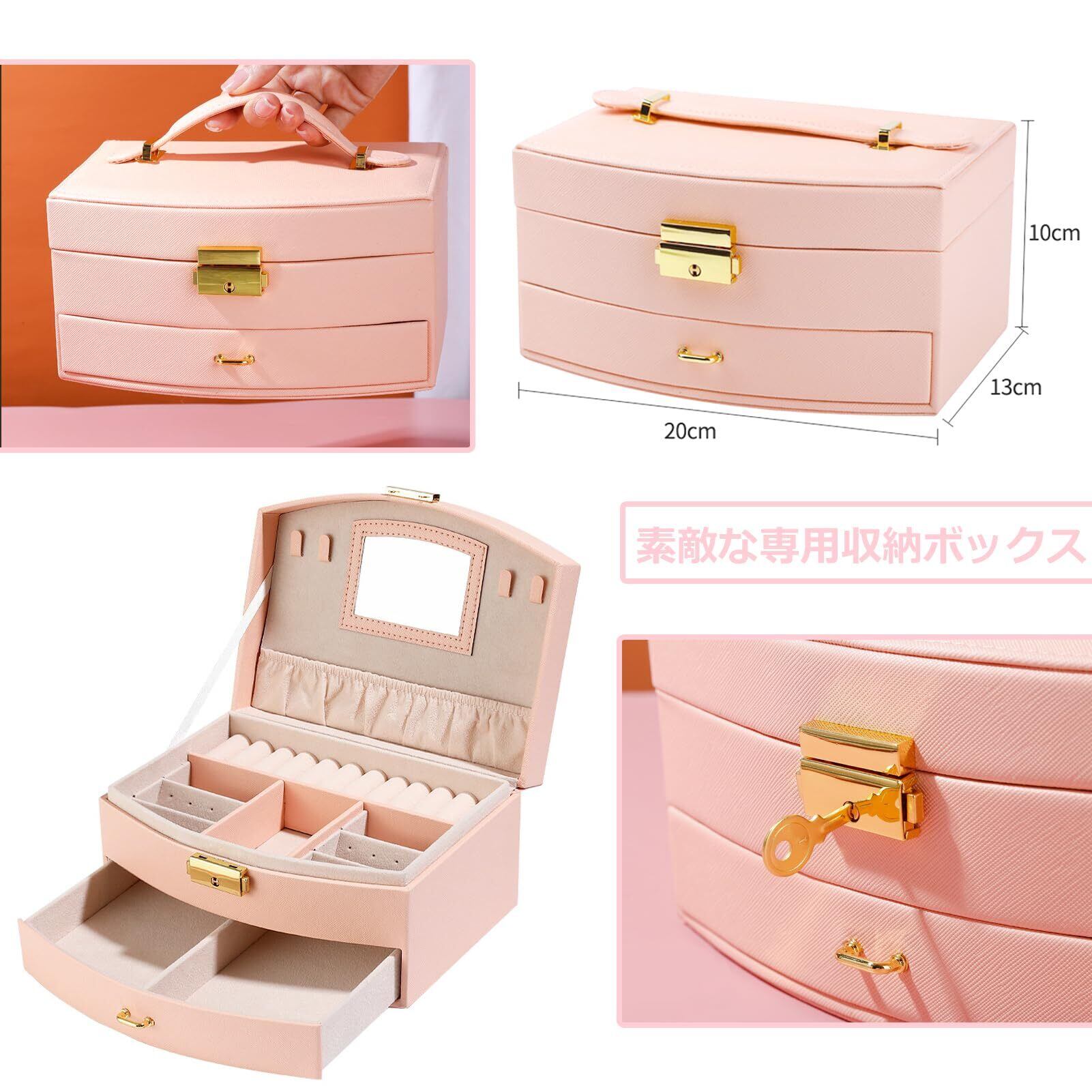 【素敵な専用収納ボックス付き】ボックスのサイス:幅20×奥行16×高さ10cm。上質なPUレザーと柔らかいベロア裏地から作られています。魅力的な外観と耐久性を持っています。金属の安全ロックがあり、大切なヘアアクセサリーを安全に保管できます。持ち運びに便利なハンドルデザイン。
