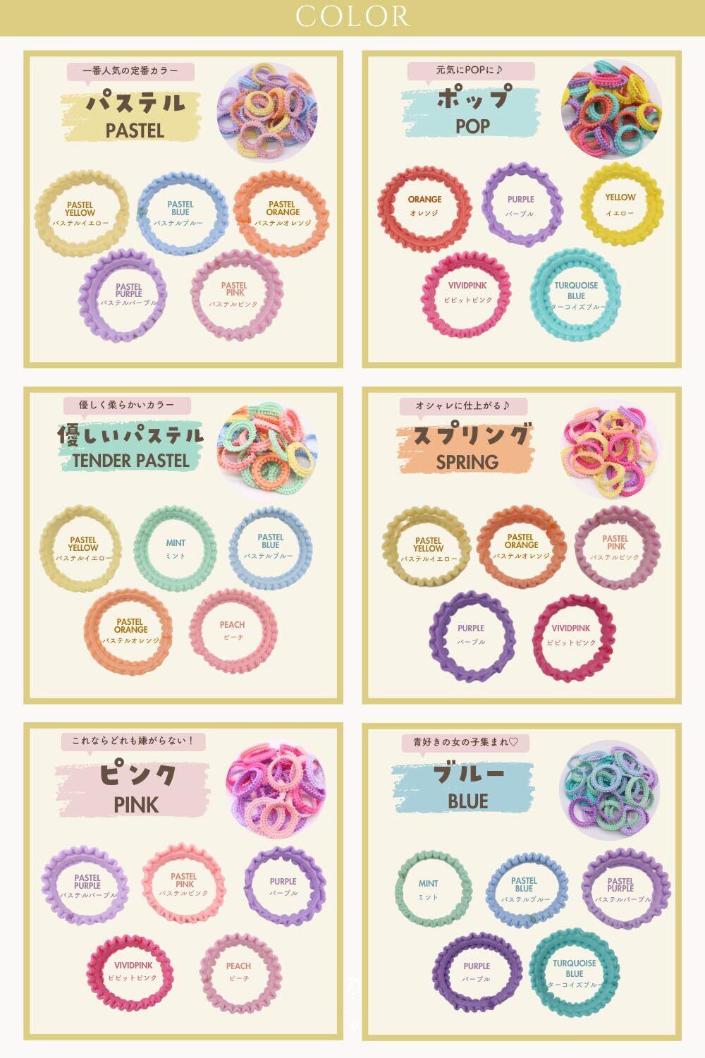【選べる6カラー!結ぶだけで可愛いデザイン】 パステル・ポップ・優しいパステル・スプリング・ピンク系・ブルー系 の豊富なカラーバリエーション!シンプルだけど 結ぶだけで可愛くなる カラー展開で、その日の服や気分に合わせて楽しめます。