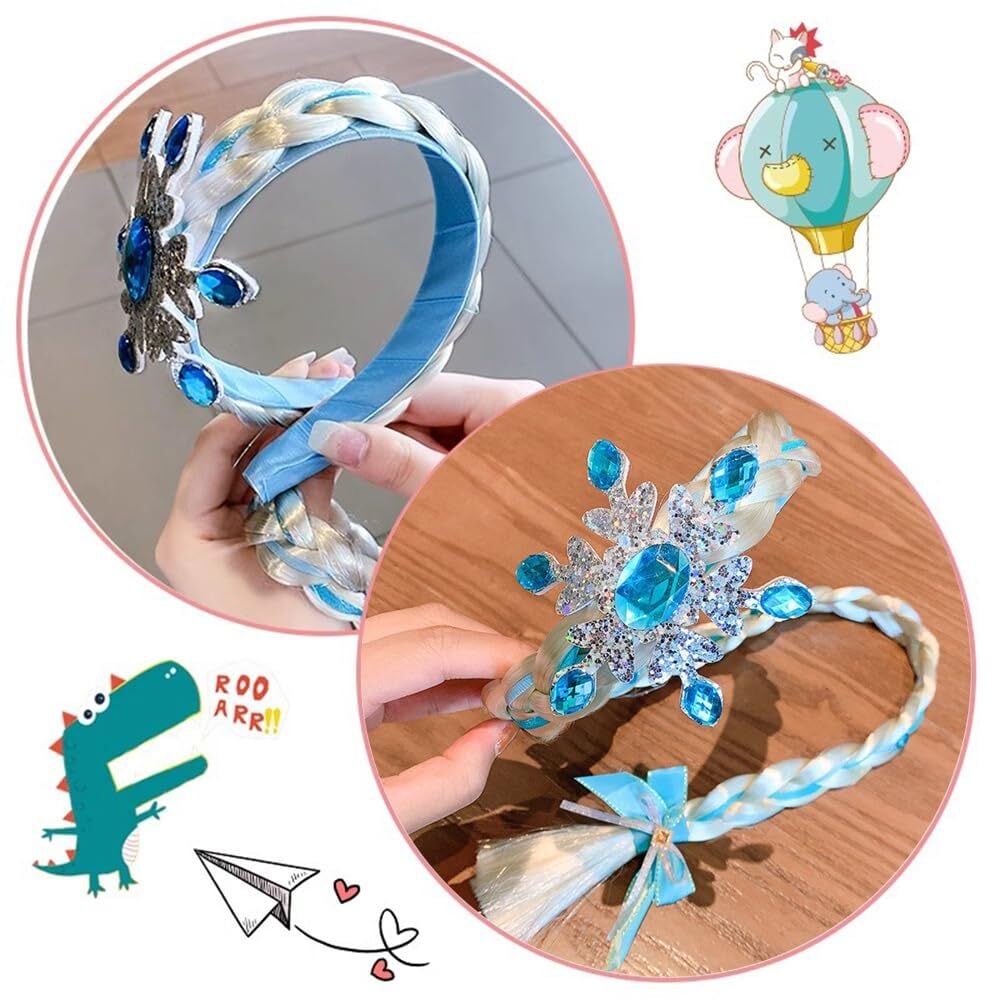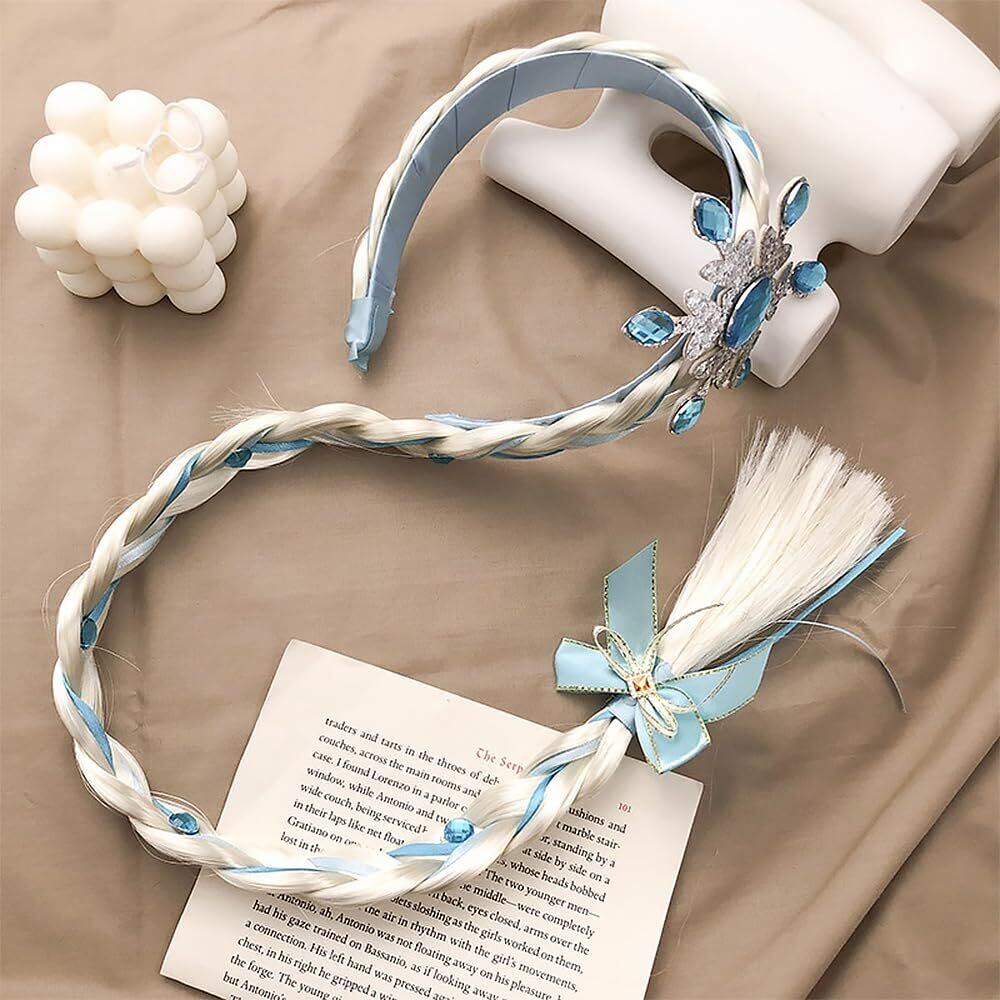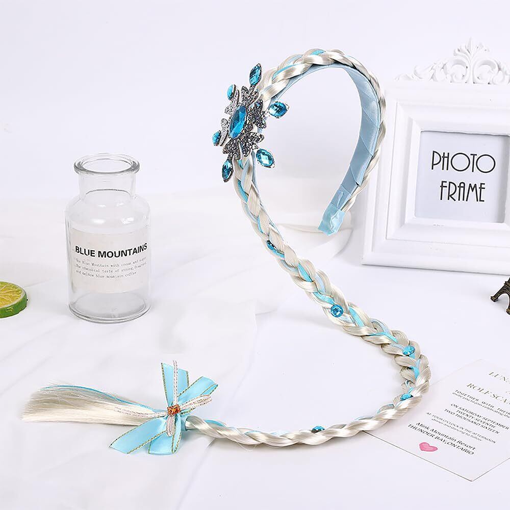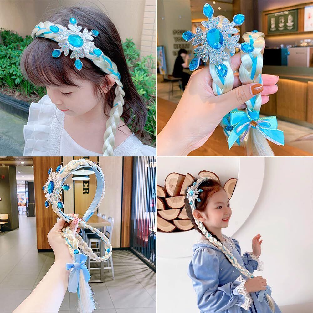 【品質素材】ヘッドバンドは光沢のあるブルーとシルバーのラインストーンで飾られ、三つ編みの端にはブルーのサテンリボンのリボンが付いていて、可愛くて愛らしい、プリンセスの女の子に欠かせない仕上げです!
