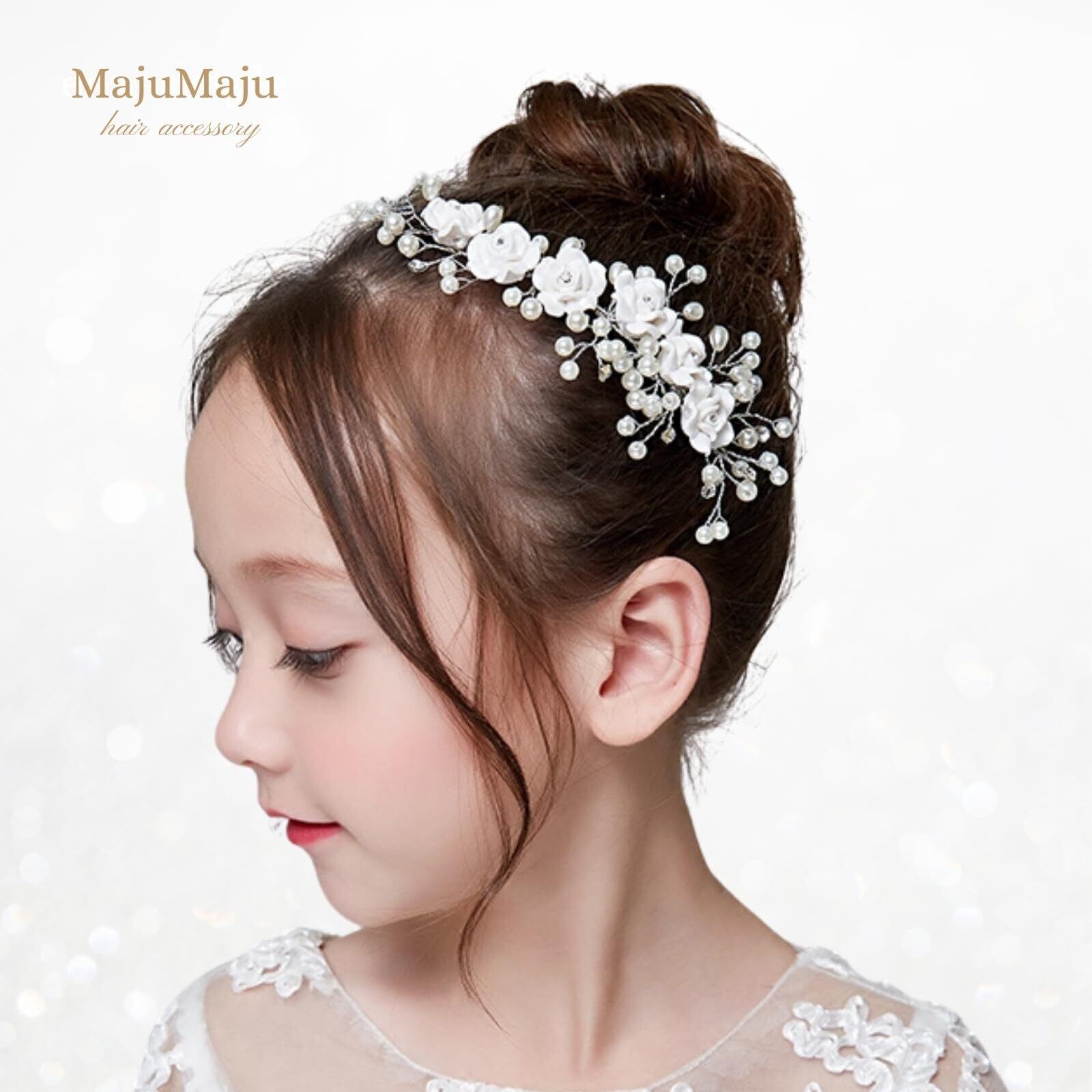 子供から大人まで使える上品なヘアアクセサリー お子様のピアノ発表会はもちろん、卒業式や結婚式など、様々なシーンで活躍するアクセサリーです。形を変えられるので、髪型に合わせてアレンジを楽しめます。大きすぎず、小さすぎない絶妙なサイズ感が魅力です。