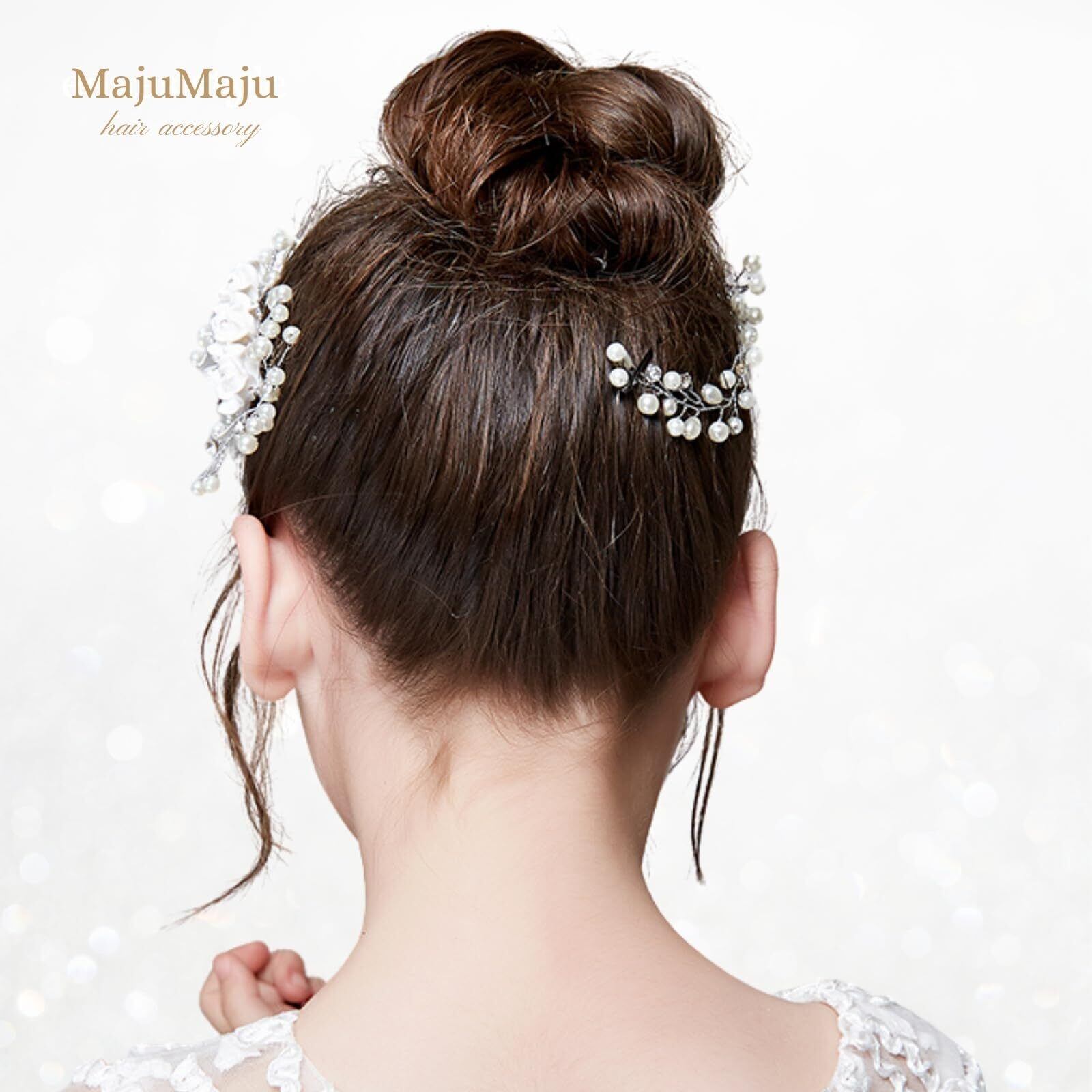 陶器のような薔薇とパールビーズをふんだんにちりばめた豪華で存在感のあるヘアアクセサリー。 正面はもちろん横からのスタイルもインパクトに残る可愛らしさ。 アップスタイルでは髪飾り、ダウンスタイルではカチューシャと2通りにもお使いいただけます。 シンプルなデザインなので和洋どちらも合わせやすく、コームタイプで簡単にドレスアップできます。