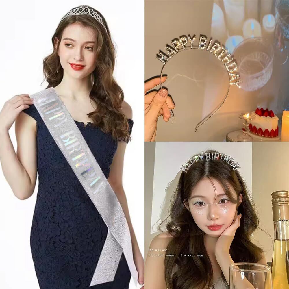 LIKENNY 誕生日 王冠 たすき ブローチ バースデー ケーキ 飾り キラキラ 王冠 パーティーグッズ 記念日 お祝い小道具 子供 女の子 女性 カチューシャ
