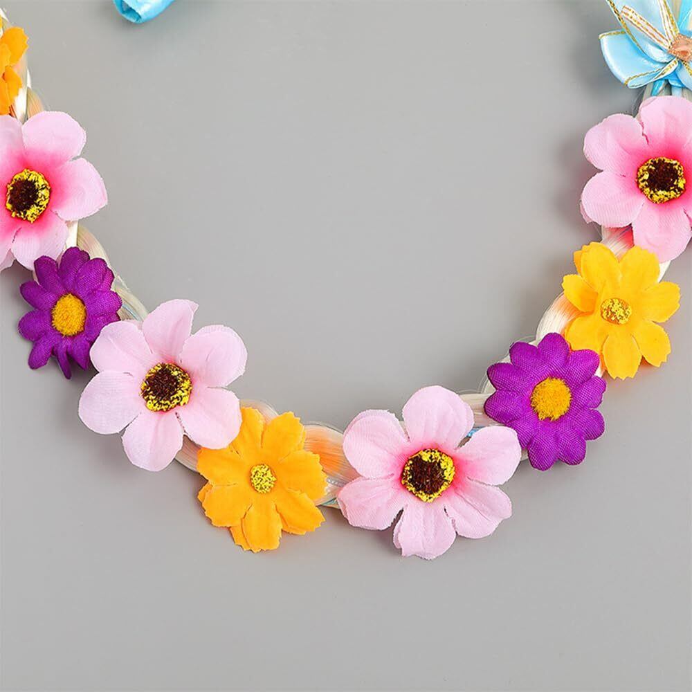 【高品質】ラプンツェルの髪にはリボンと本物そっくりの繊細な花が絡み合っていて、てっぺんにはキラキラと輝く小さな王冠、一番下にはキュートなリボンがついています。非常にまぶしい、あなたの娘を王女のように輝かせてください、プリンセスの夢を叶えます。