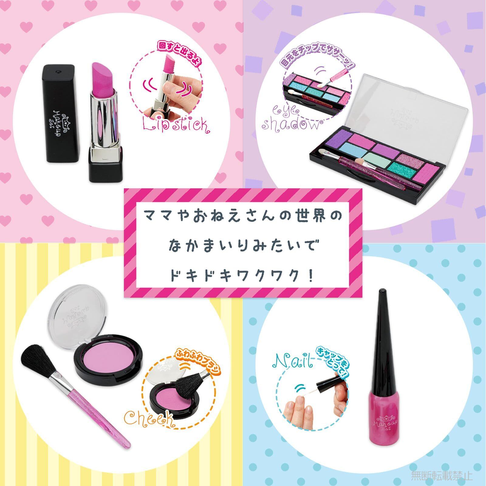 アイシャドー、リップ、チーク、ネイルでお母さんやおねえさんと同じように遊べるメイクアップセット