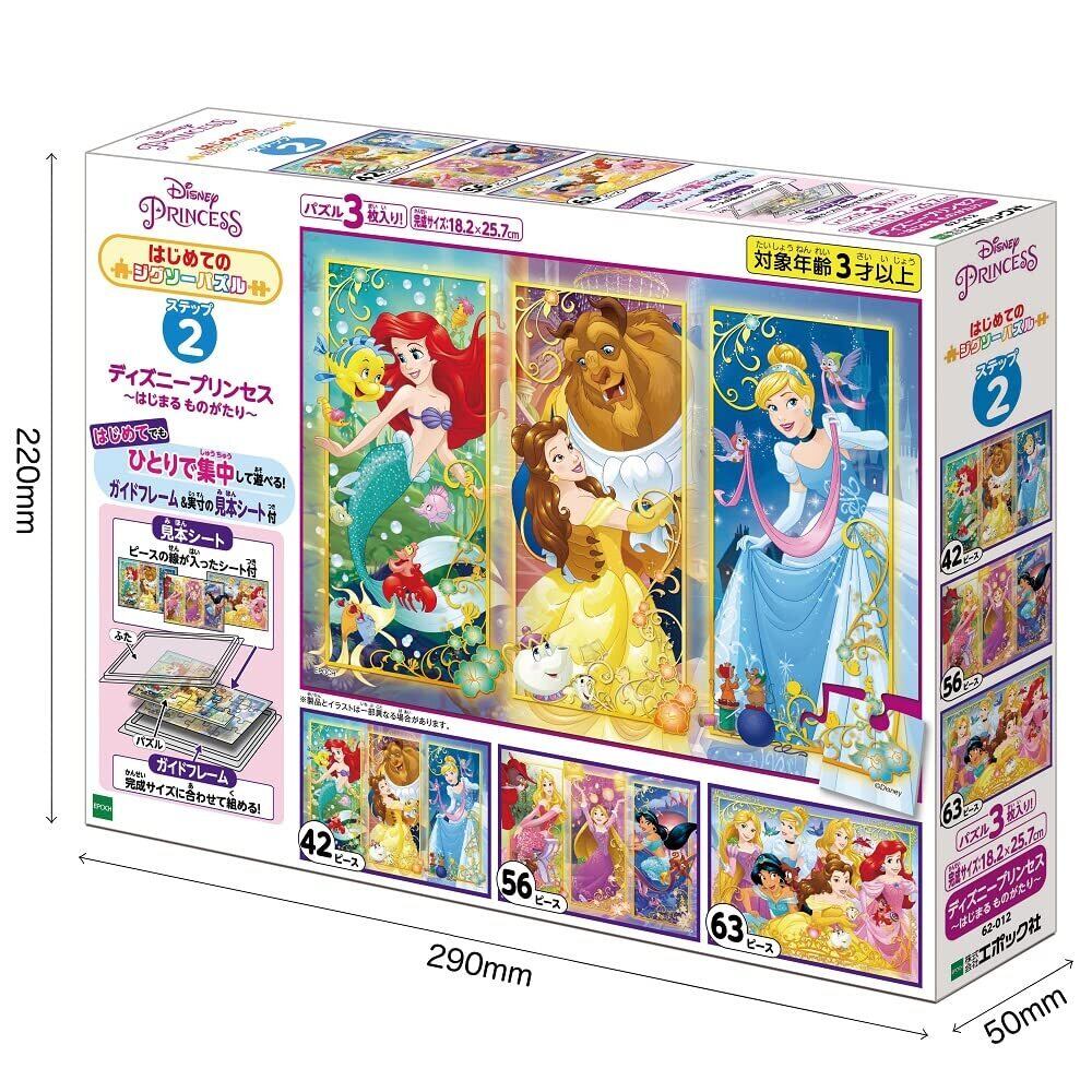 エポック社 42/56/63ピース はじめてのジグソーパズル ディズニープリンセス ~はじまるものがたり~ (18.2×25.7cm) 62-012 3種のパズル 見本シート付 ガイドフレーム付き 3歳以上 おもちゃ EPOCH