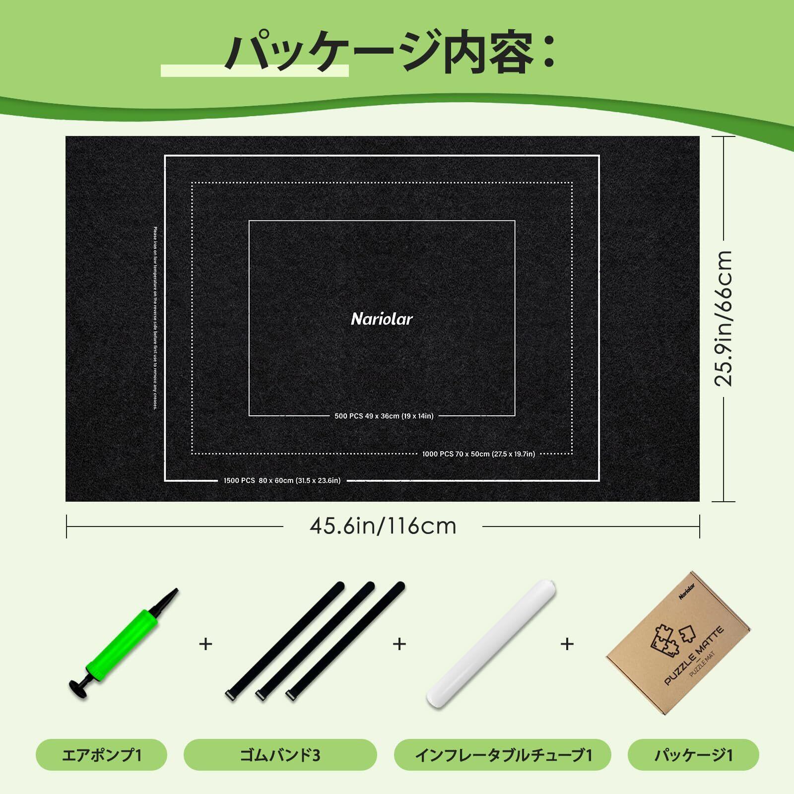 【完全なパズルロールセット】Nariolarのパズルマットセットには、1000ピース用の116 x 66cmのパズルマット、膨張可能なコア、ポンプ、3本のバンドが含まれており、パズルの保管と移動に最適な組み合わせです!パズル自体は付属していないことにご注意ください