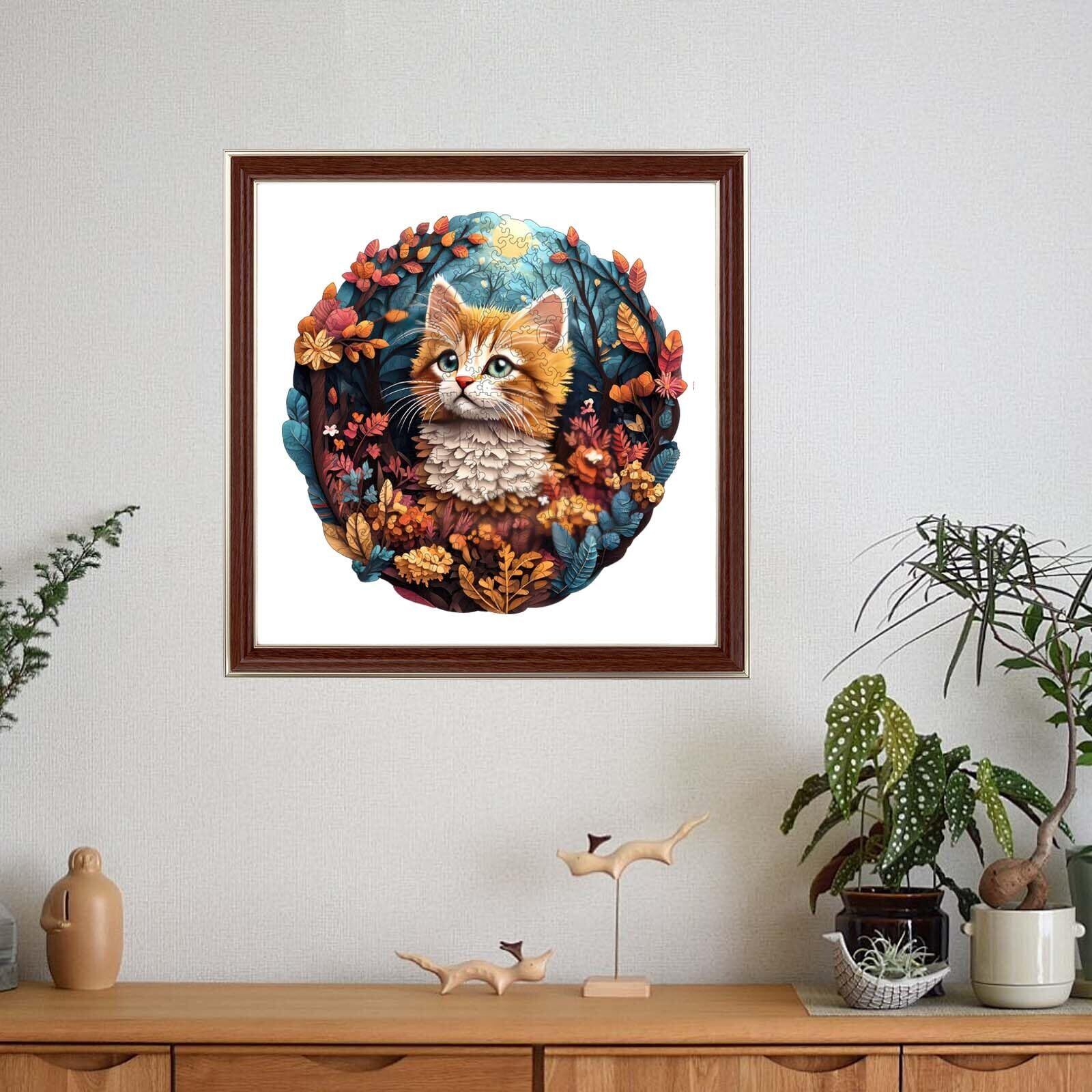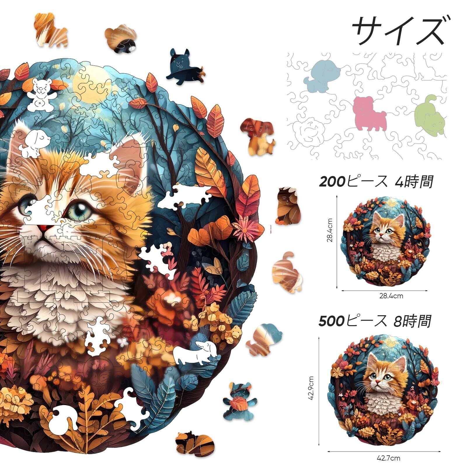 キュニスレ(Qiuenisray) ジグソーパズル 200ピース 木製パズル 森の子猫 (28.4×28.4cm) 3mm厚 異形ピース 大人向け 折れにくい レーザーカット インテリア ギフト 暇つぶし 家庭 脳トレ デザイナー監修