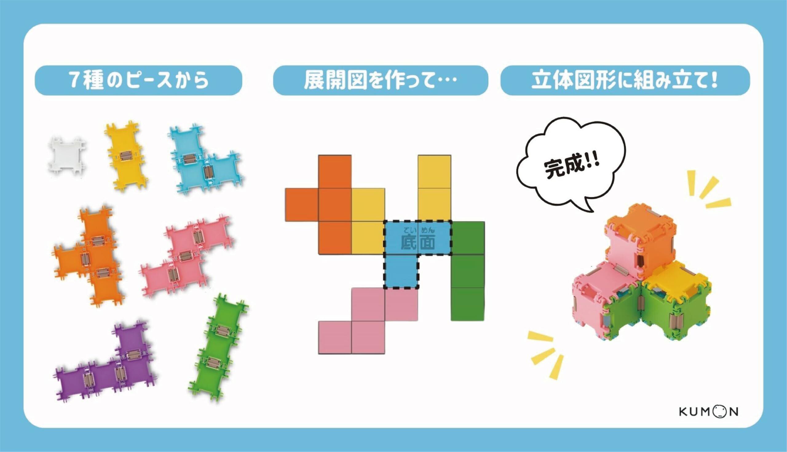 そのため、1枚1枚バラバラのピースを使って立体を作る時よりも、よく考えながら組み立てる必要があり、思考力、空間認識力が養われます。