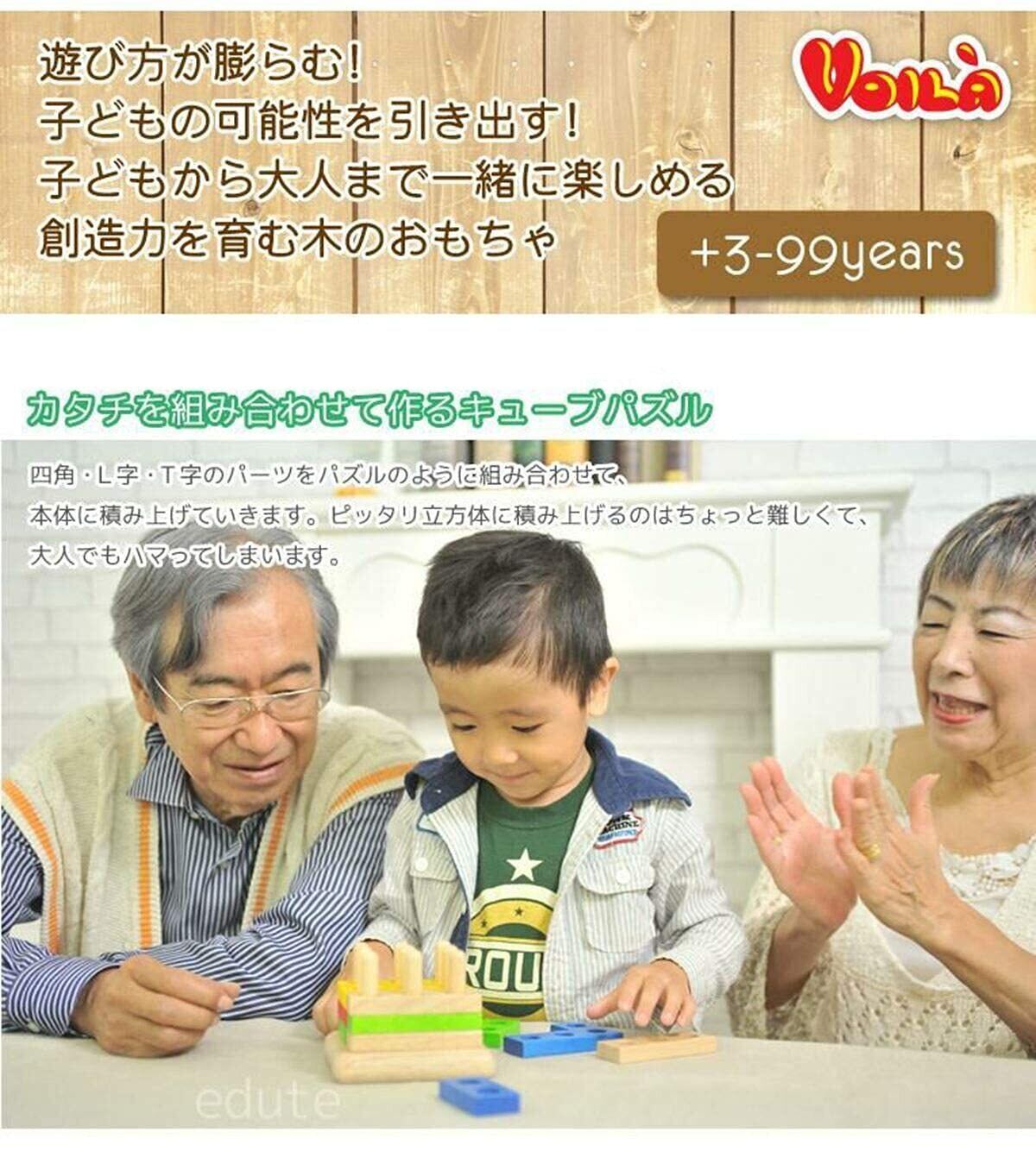 【キューブパズル】色々なカタチのパーツを組み合わせて積み上げよう!ピッタリ立方体にパズルを積み上げるのはちょっと難しくて、大人でもハマってしまいます。【平面パズルとしても◎】パッケージ写真と同じカタチを作ったり、自由な発想で楽しめます。【積み木】高く積み上げて創造力・バランス力UP!複雑な作業の中から知性を育みます。