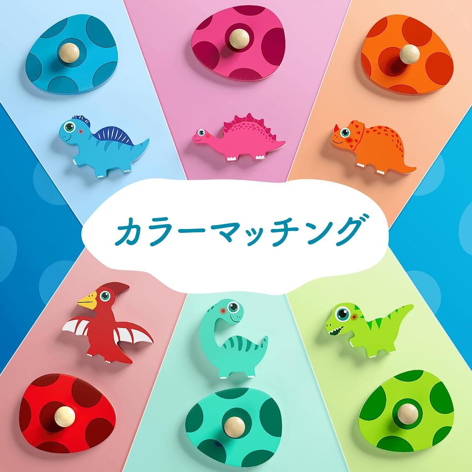 カラーマッチング:卵の色は恐竜と一致しています、幼児は卵と恐竜パズルピースとマッチングすることができます。握りやすい木製つまみを利用すると、幼児はパズルピースを握ったり、持ち上げたり、操作することを楽しみながら、運動能力を向上させることができます。