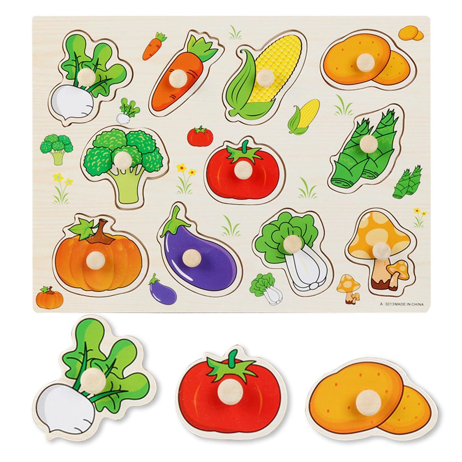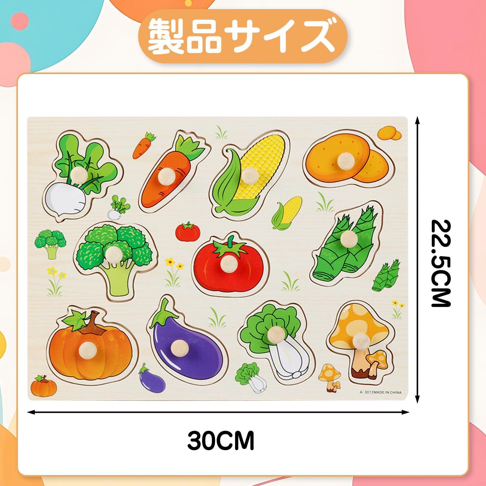 木製パズル 型はめパズル 赤ちゃん モンテッソーリ 知育玩具 幼児早期開発 形合わせ 形認識 色認知 色彩感覚 脳トレ 手と目の調和 カラーマッチング おもちゃ フルーツ/動物/乗り物/海洋生物/野菜/数字/英語のアルファベットのパズル 男の子 女の子おもちゃ 誕生日プレゼント (野菜)