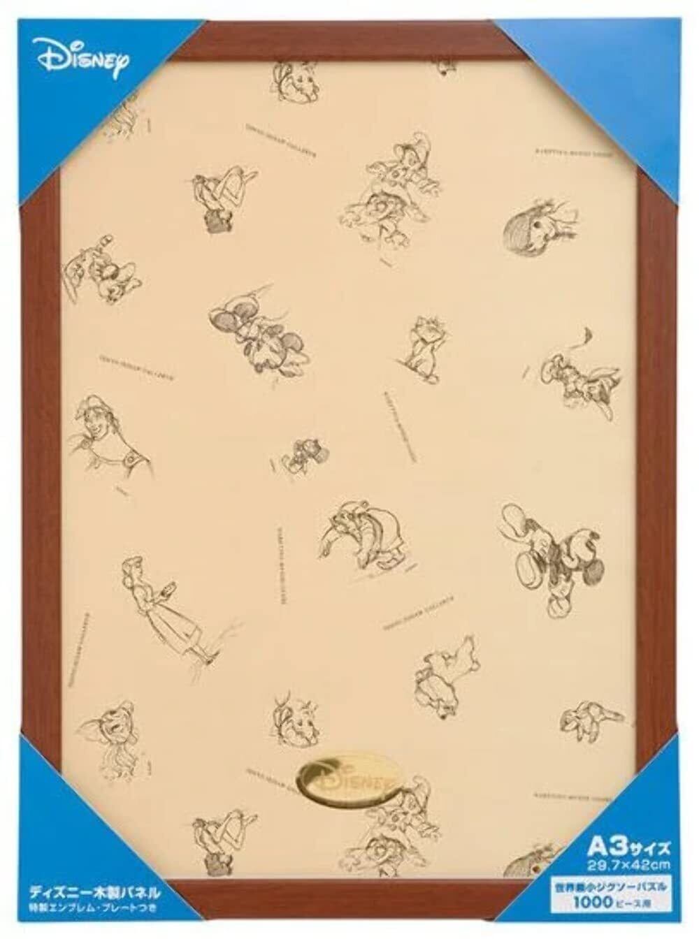 テンヨー(Tenyo) 【日本製】 木製 パズルフレーム ディズニー専用 パネル 世界最小1000ピース用 ブラウン (29.7x42cm) DISNEYエンブレムプレート 掛け紐 付属