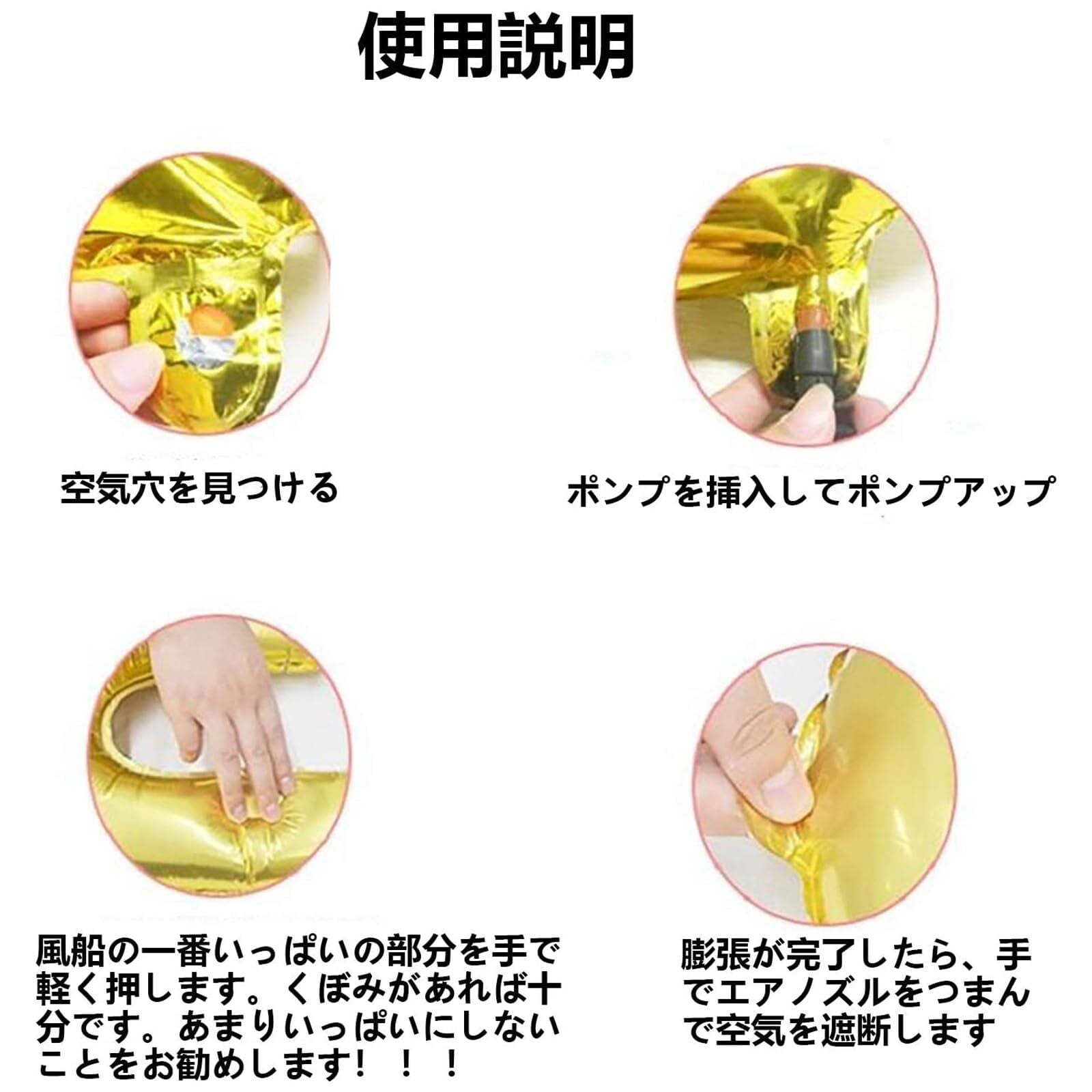 注意:窒息する危険があり、8歳未満の子供は、膨らんだか破損したバルーンで窒息または窒息する可能性があります。大人には監督が必要で、収縮したバルーンを子供から遠ざけてください。