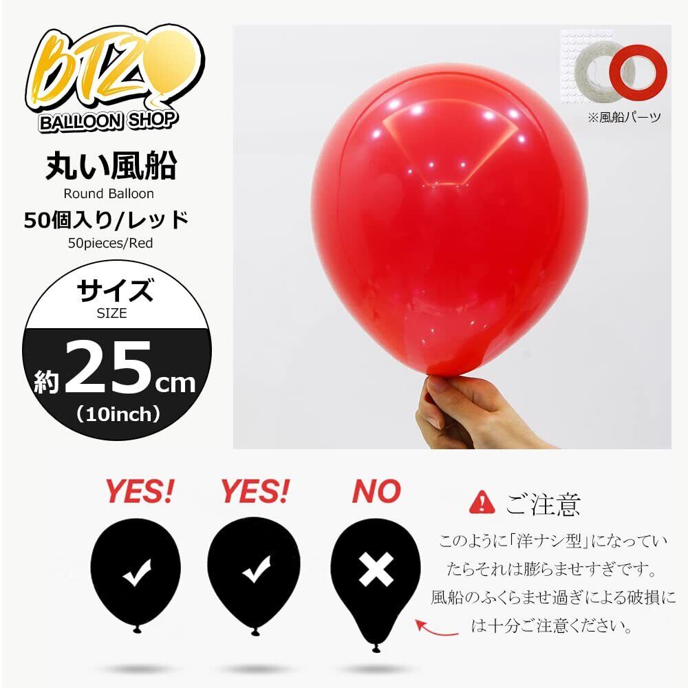 BTZO バルーン ゴム風船 飾り付け 50個入 10インチ 丸 ラテックス 飾り付け 誕生日 結婚式 店舗装飾 パーティー 運動会 文化祭 バルーンアート レッド