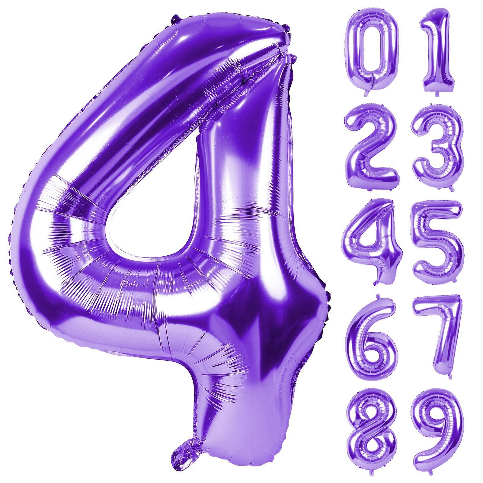 Lausatek バルーン アルミ風船 数字4 ナンバー 40インチ 大きい 誕生日 ハッピーバースデー 飾り付け ウェディング 記念日 パーティー 紫 約90cm パープル