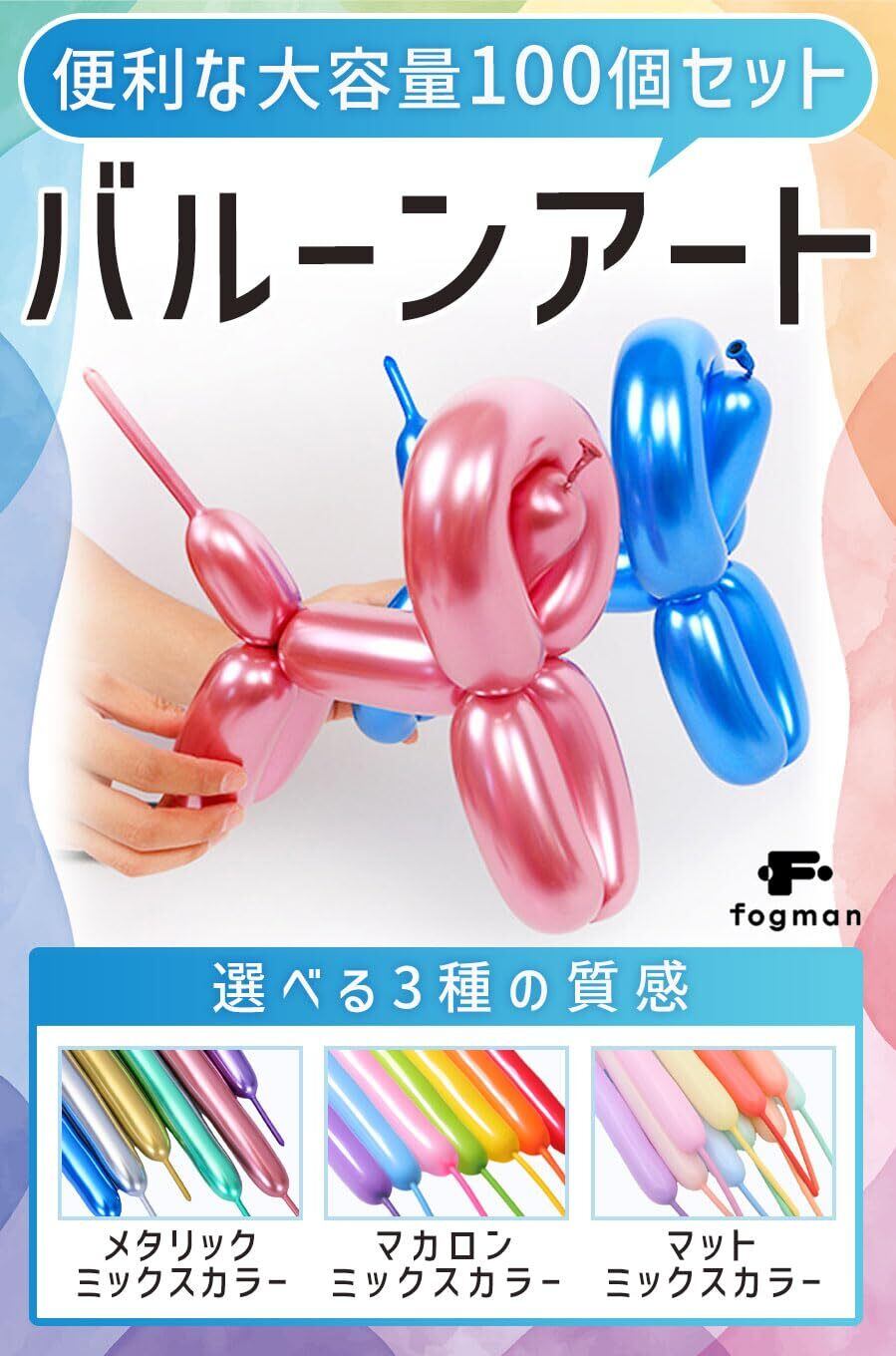 fogman バルーンアート 風船 ペンシルバルーン マジックバルーン 割れにくい 100個セット (マットミックスカラー)