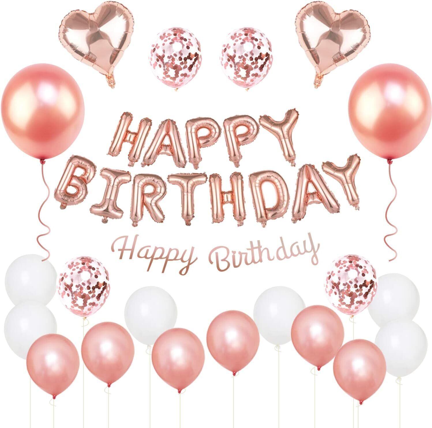風船 誕生日 飾り付け セット Happy Birthday バースデーバルーン ガーランド 紙吹雪風船 パーティー お祝い 記念日 サプライズ 王冠 男女兼用 可愛い おしゃれ (ローズピンク)