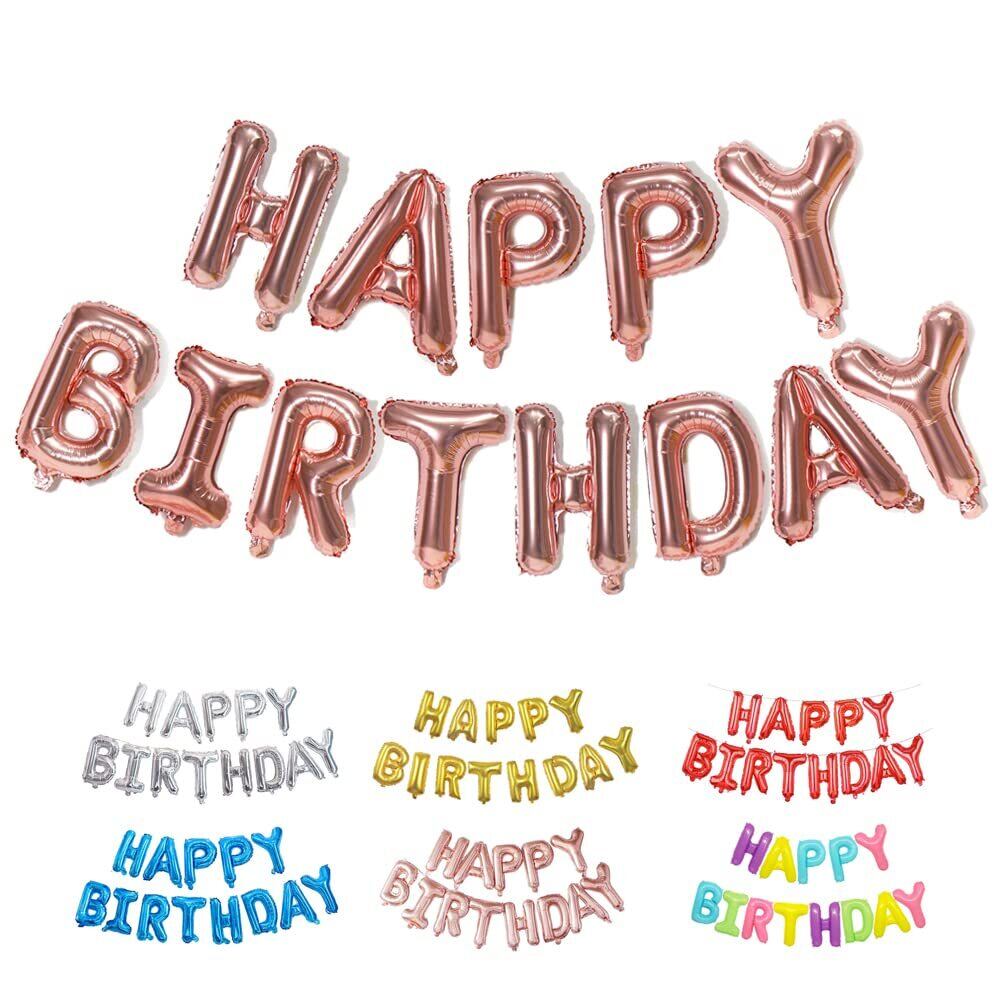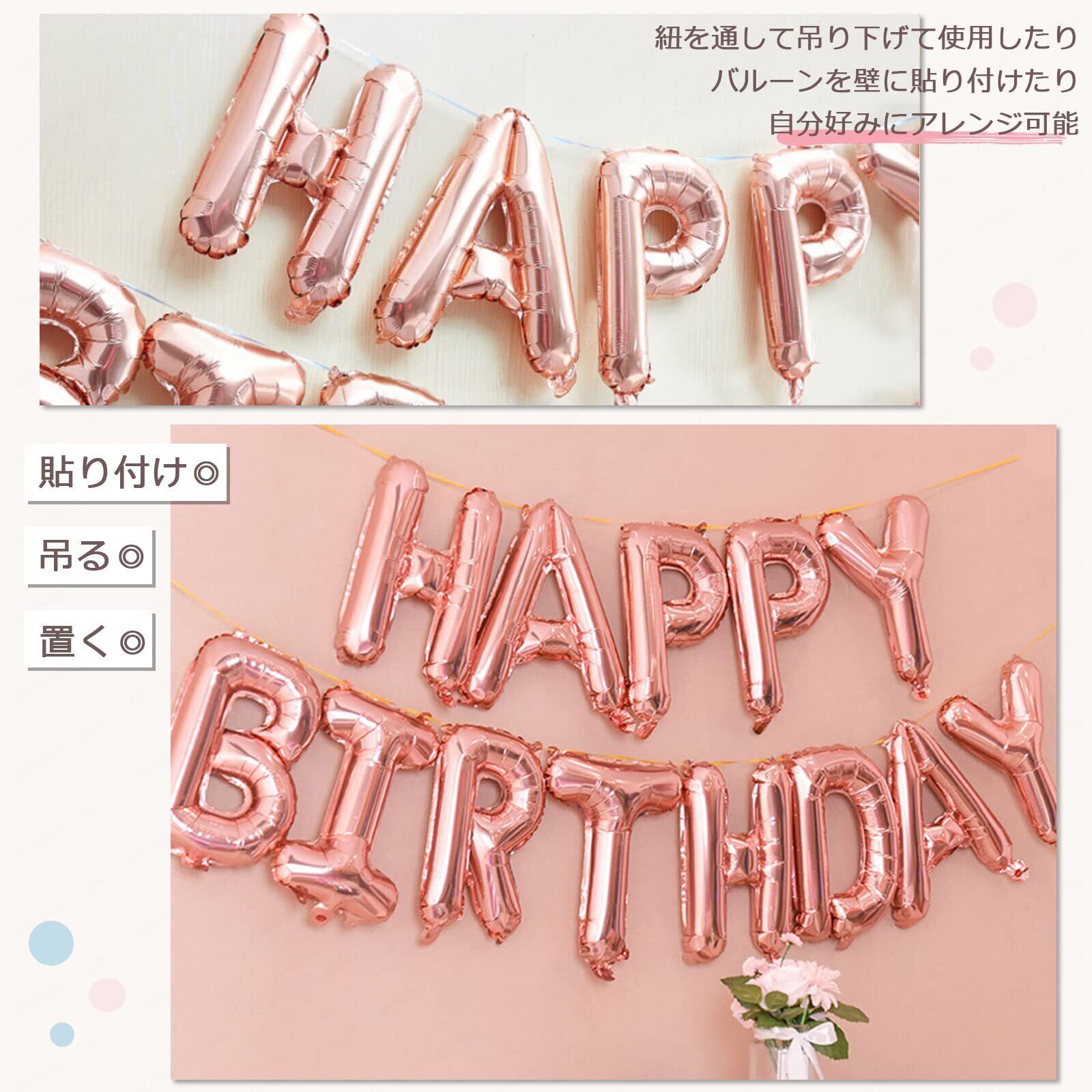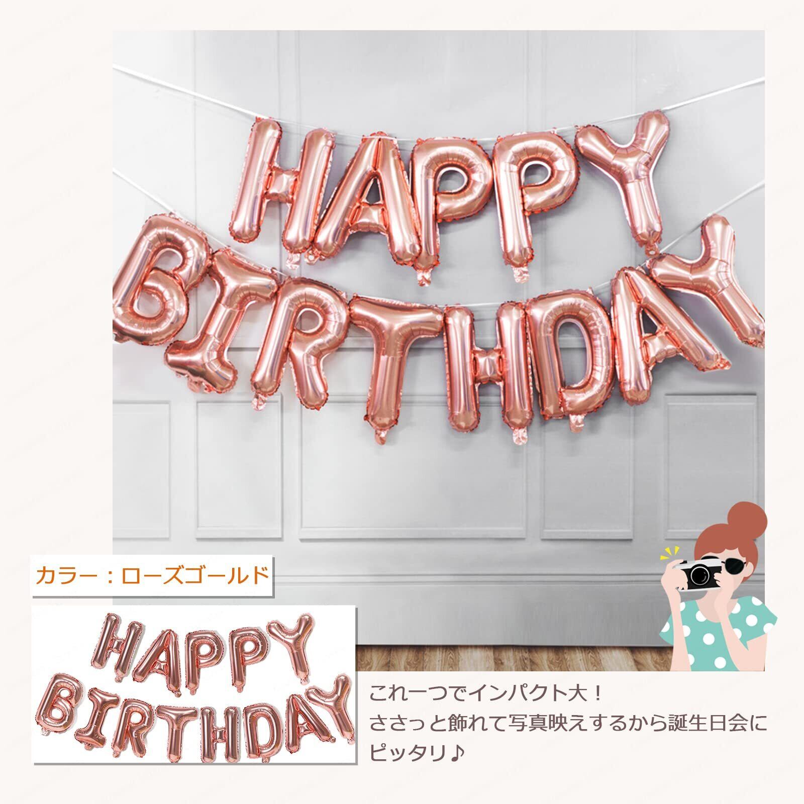 Lausatek 誕生日 飾り バルーン アルミ風船 HAPPY BIRTHDAY ハッピー バースデー 文字 飾り付け リボン付き ローズゴールド