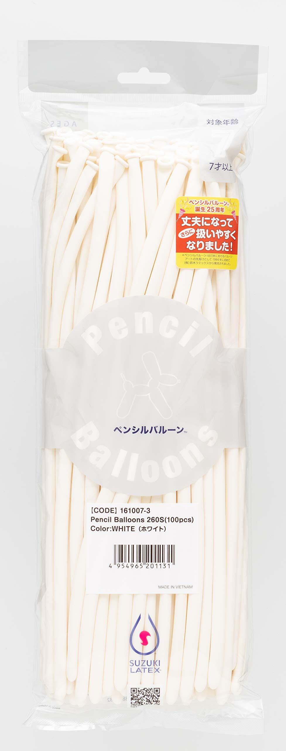 鈴木ラテックス ペンシルバルーン 単色100本 ホワイト