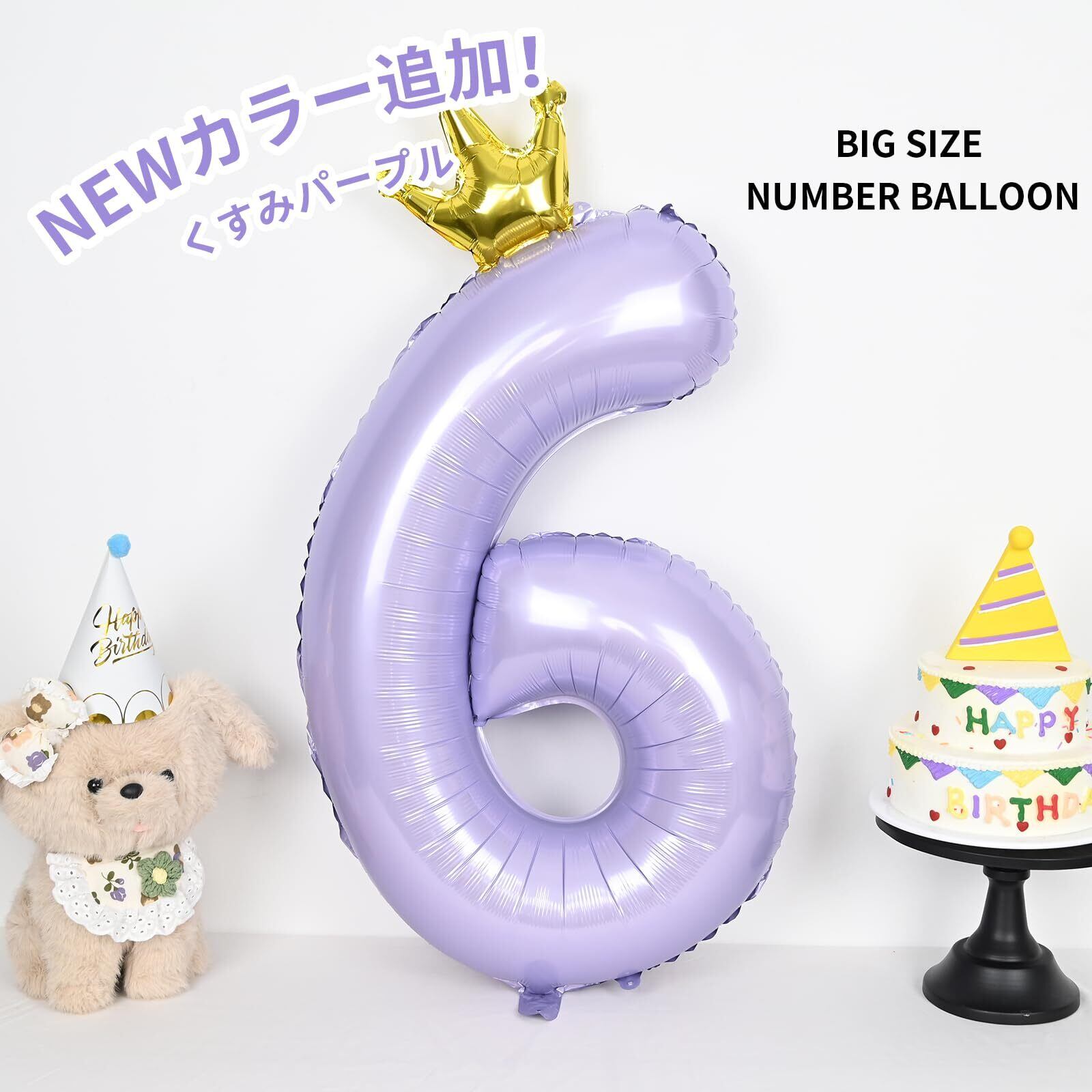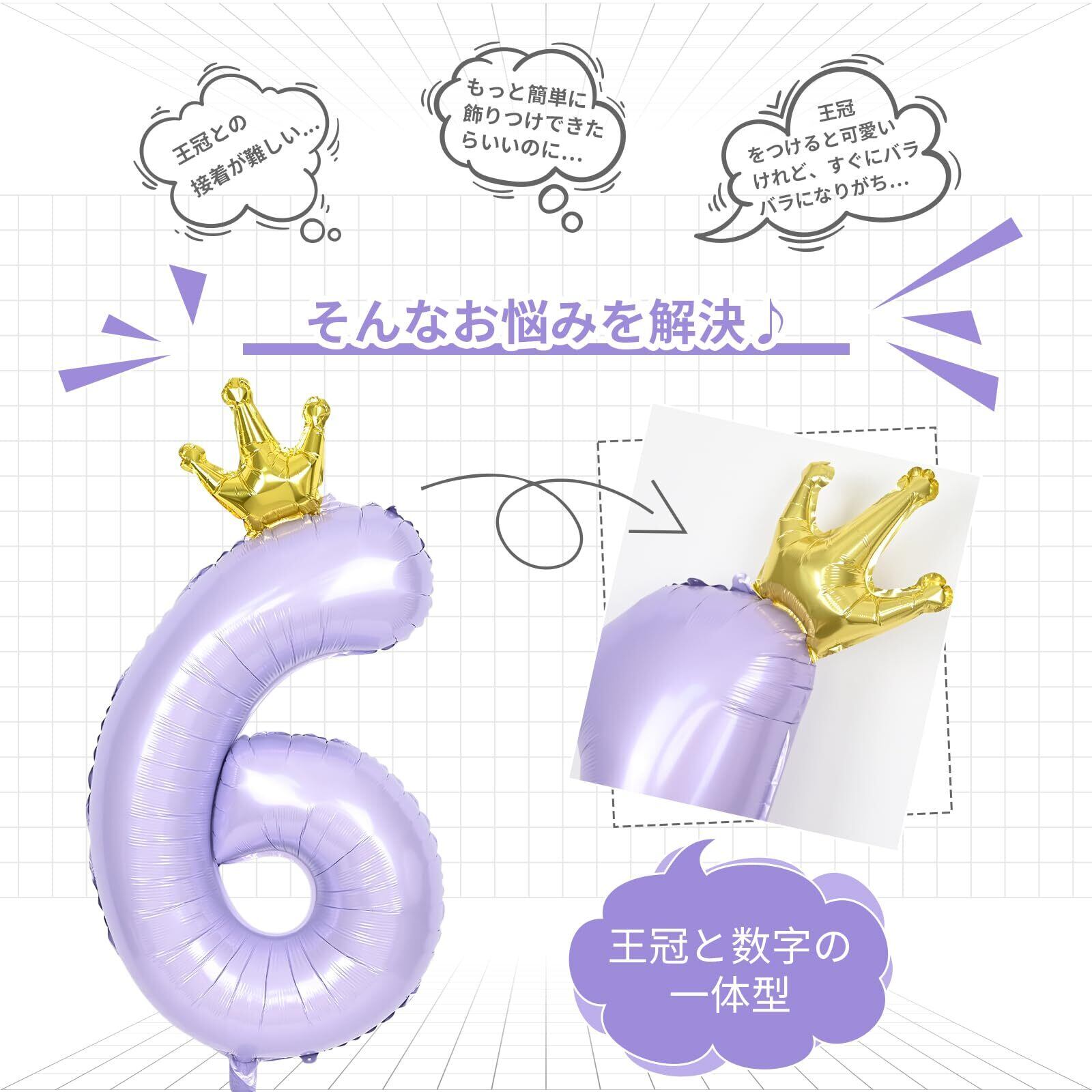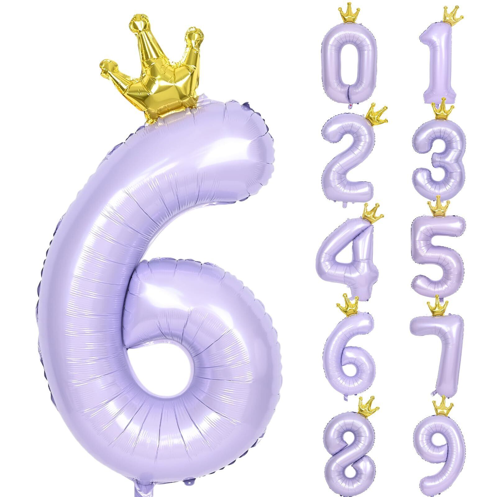 Lausatek バルーン 数字 風船 誕生日 40インチ 大きい ナンバー6 王冠付き クラウン バースデー 飾り付け パーティー 記念日 結婚式 男の子 女の子 約100cm 紫 ラベンダー