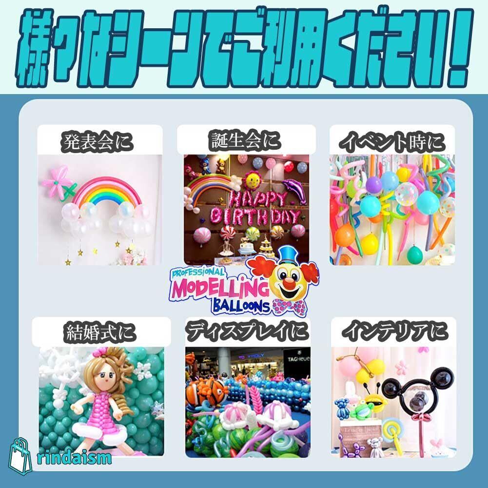 バルーンアートで使用されるバルーンを大容量の100個、200個セットでご用意しました。細長風船、ペンシルバルーンとも呼ばれる、ひねる風船を使ってイベントや楽しい思い出を華やかに演出しましょう。