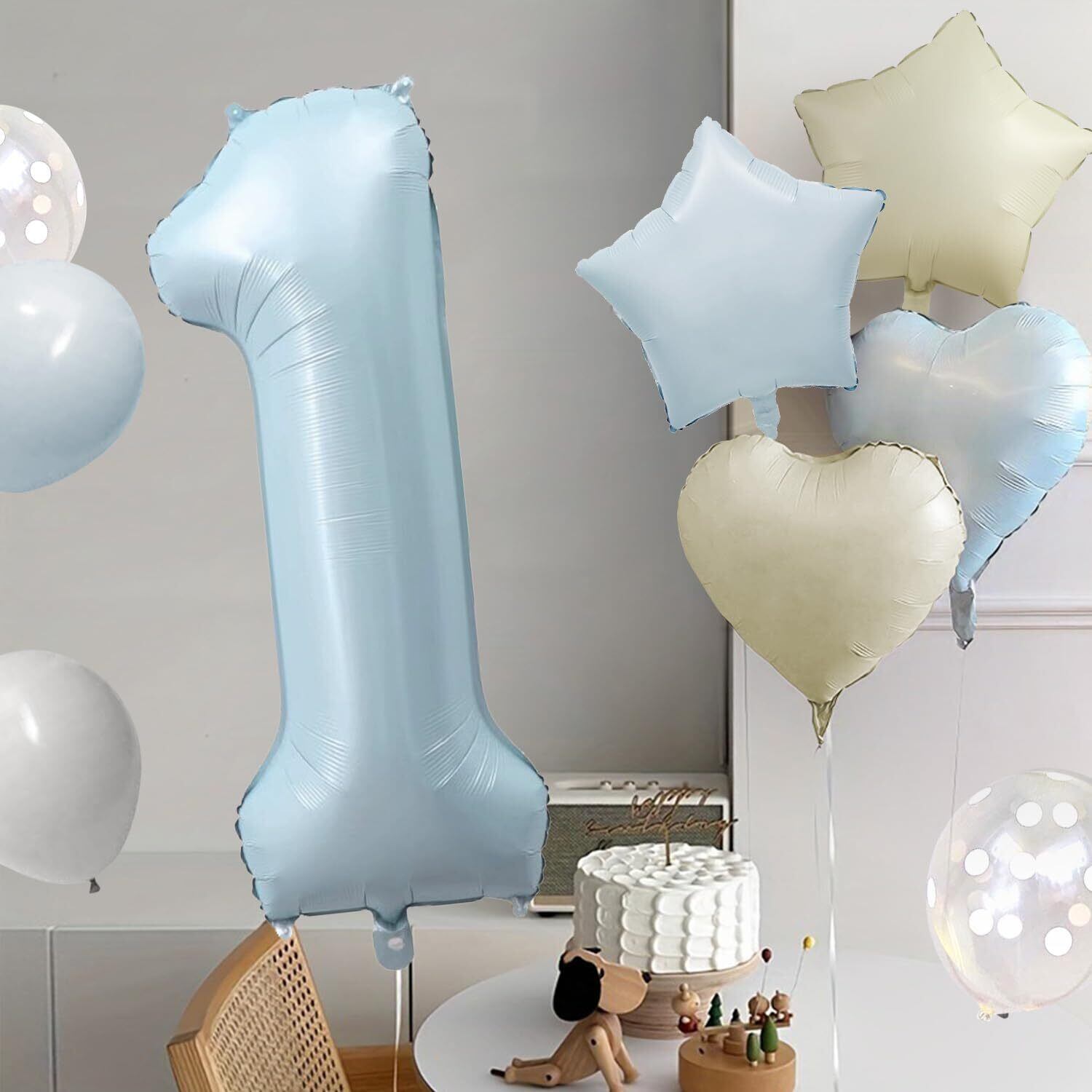 1歳 バルーン 誕生日 飾り付け 数字 バルーン 90cm 大きい ナンバーバルーン 18点 セット バースデー 飾り 1 風船 子供 誕生日お祝い 男の子 女の子 くすみブルー
