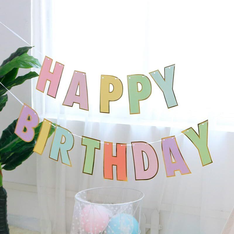 マカロン色 Happy Birthday ペーパー レター ガーランド マカロン フルカラー 誕生日 飾り付け ガーランド バースデー バナー 誕生日 飾り バースデー 飾り 写真背景 バースデー パーティーグッズ お祝い 子供 大人