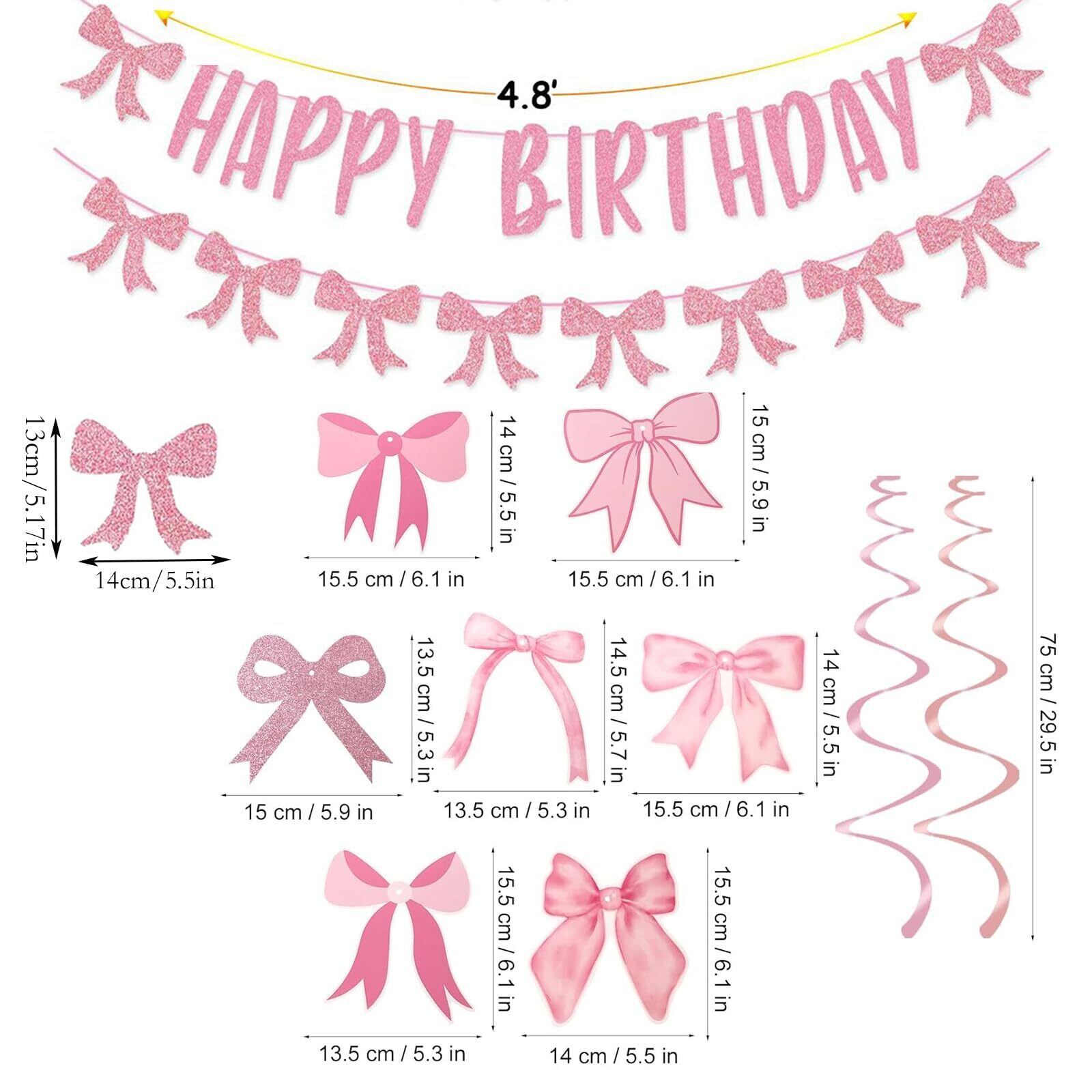 30枚の誕生日おめでとうピンクのリボンの横断幕、きらめく装飾の女の子のリボンのテーマ、渦巻きリボンの装飾を弔り下げて、女性の誕生日パーティー、独身パーティ用品です
