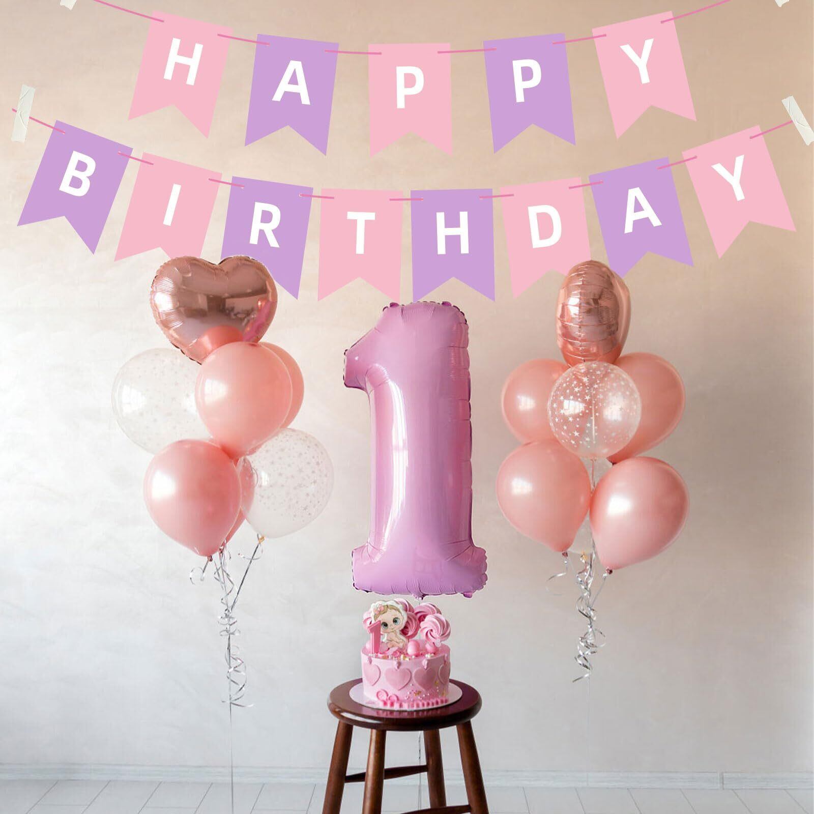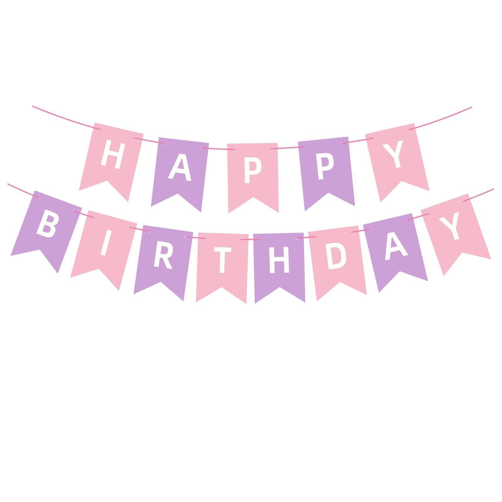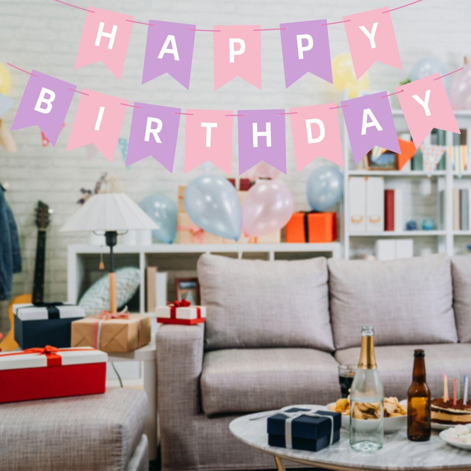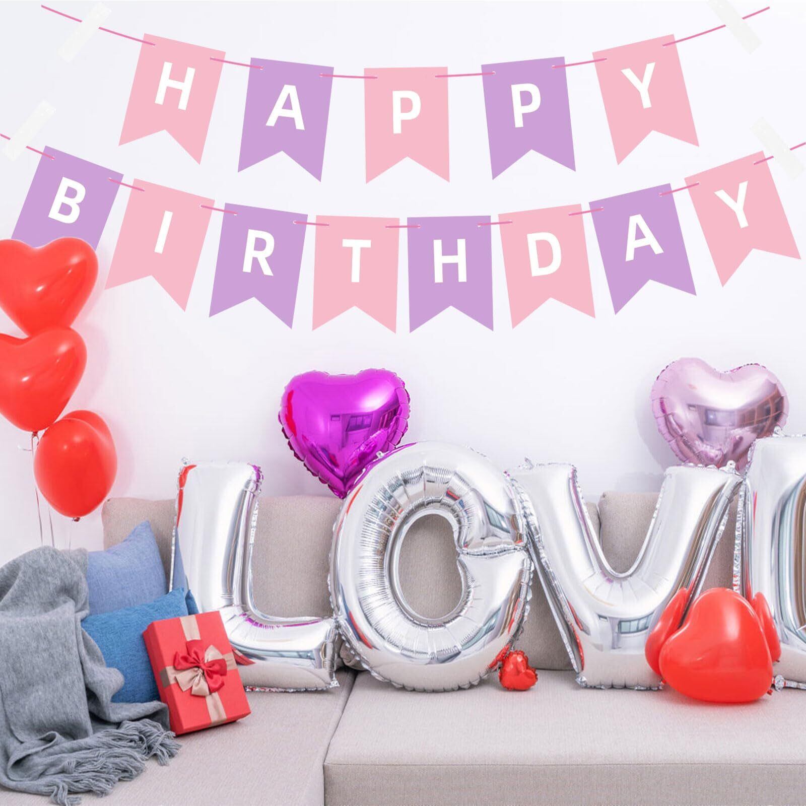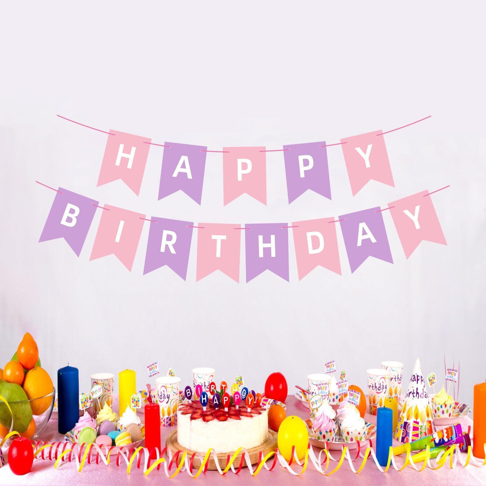 Happy Birthday ガーランド ピンクパープル 誕生日 飾り付け 誕生日 バースデー ガーランド 飾り付け 壁 装飾 シンプル バースデー 飾りセット15pcs パーティーバナー 装飾 お祝い インテリア 写真背景