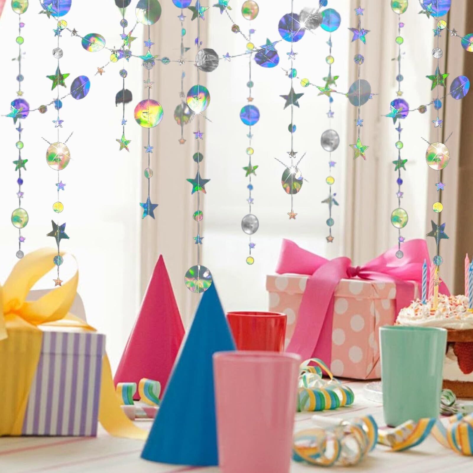 【カラフルデザイン】虹色の星ペンダントが特徴。お部屋やイベントを明るく彩り、華やかな雰囲気を作ります。